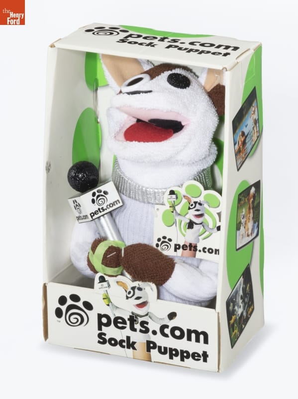 Pets.com was a web-based pet supply retailer and one of the most public victims of the "dot-com bubble burst" among Internet companies in the 1999-2001 period. Their popular mascot--a sock puppet dog--was created by TBWA Worldwide and voiced by comedian Michael Ian Black. It made appearances on talk shows, commercials, and as a float in Macy's Thanksgiving Parade.