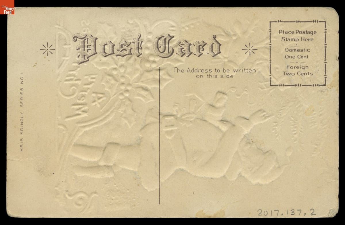 Christmas Greeting Postcard, Santa with Reindeer, "Now Listen My Deers We're Off for a Dash," 1907-1910
