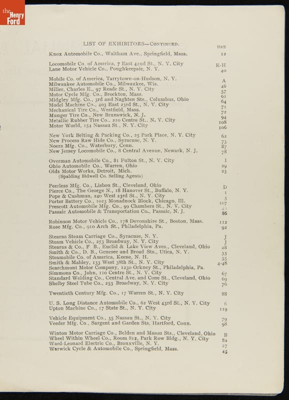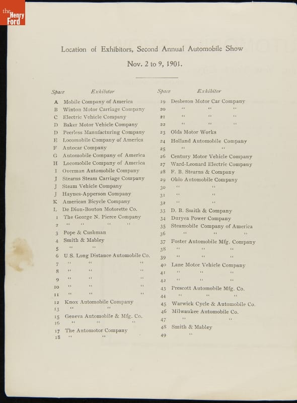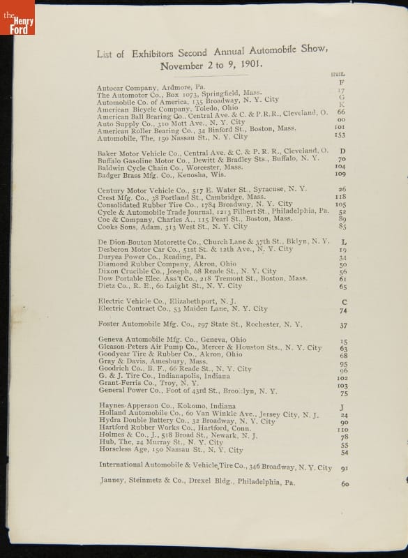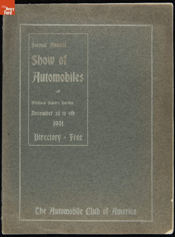 The New York Auto Show of 1900 is generally considered the first major auto show staged in the United States. This program is from the following year's event. Automobiles were expensive luxuries at this time. The auto show was a place for affluent New Yorkers to see the latest automotive innovations -- and be seen by others.