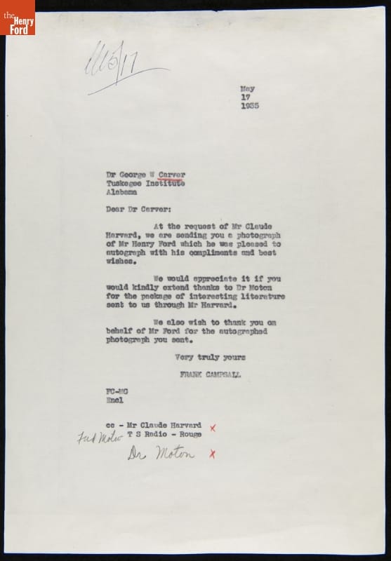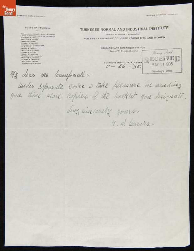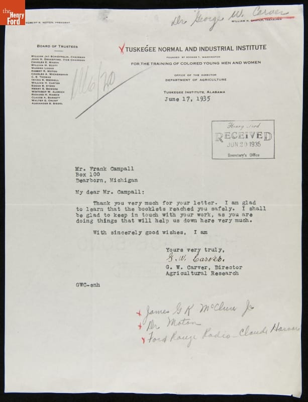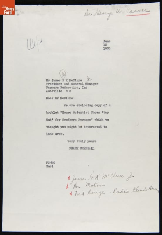 Correspondence between Claude Harvard, Frank Campsall, George Washington Carver and James McClure, May-June 1935