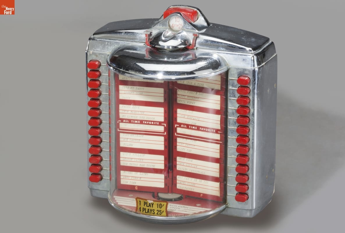 on top of jukebox: 12 28 64 on inside of jukebox, on base: AFTER DEPOSITING EACH COIN / SELECT PROGRAM UNTIL / RED LIGHT GOES OUT / WURLITZER / RELEASE PAGE LEVERS BEFORE SELECTING on top of key: WCX / 25 on bottom of key: [?] LOCK CO. / CHICAGO / ACE