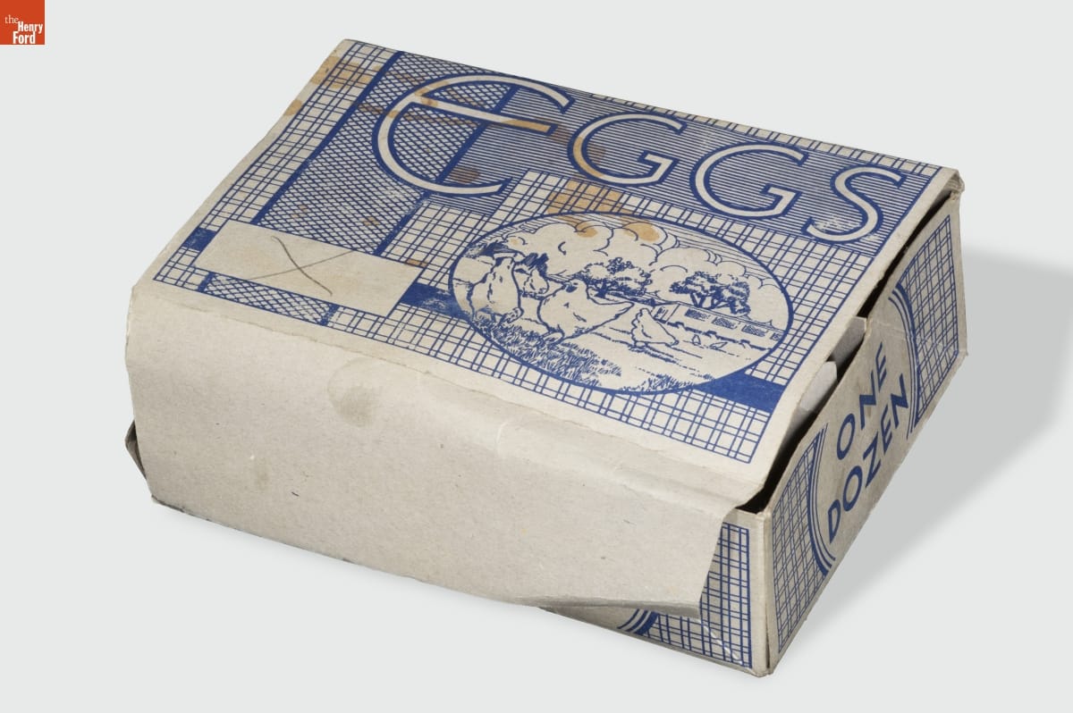 Urban grocers purchased eggs in cases of 360 and repackaged them for retail sale by the dozen. Customers could carry their farm-fresh eggs home in containers like this one, a lightweight paper carton with protective dividers that kept eggs safe during transit.