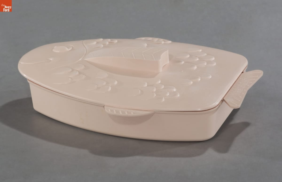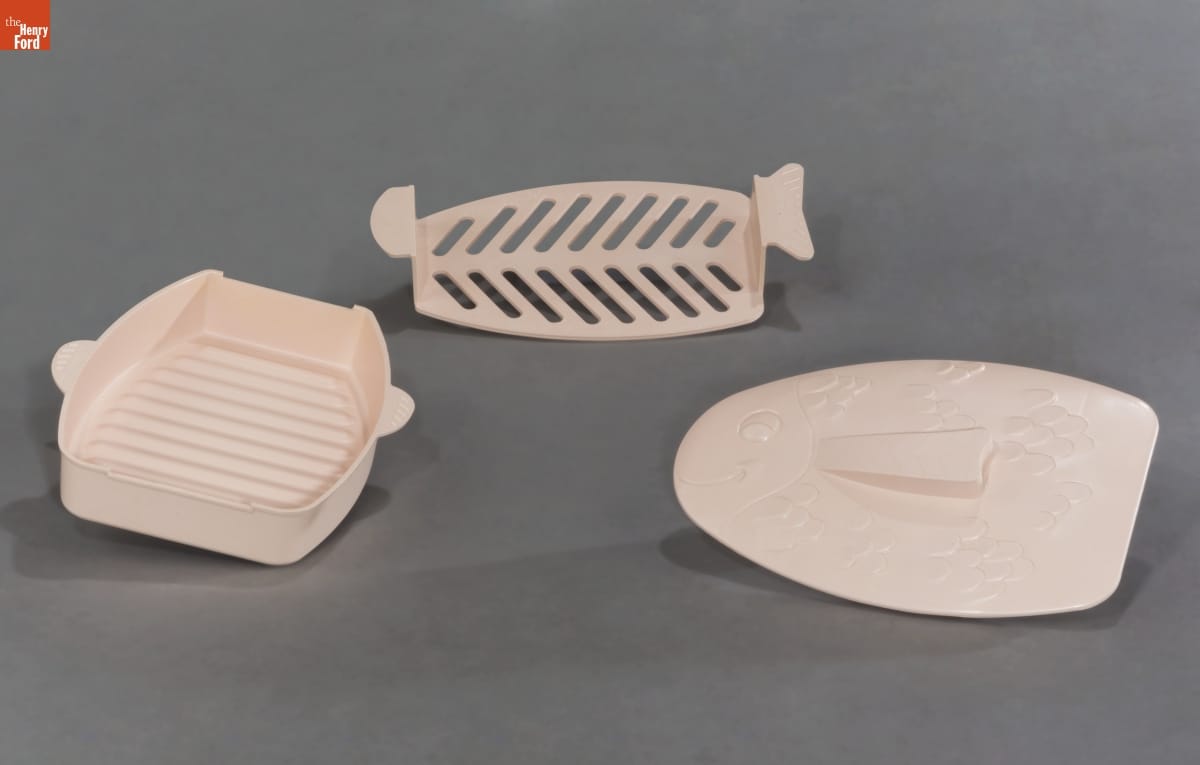 on top of front handle of pan: MICROWAVE USE ONLY on top, proper left handle of tray: MICROWAVE USE ONLY on bottom of tray: ENSAR CORP. / WHEELING, IL 60090 / PAT. PEND. MADE IN USA on top and bottom of packaging: MICROWAVE FISH COOKER / WHOLE FISH / FILLETS / FISH STEAKS on proper right side of packaging: MICROWAVE FISH COOKER on proper left side of packaging: MADE IN USA / ENSAR CORPORATION / PATENT PENDING / 1003 / WHEELING, IL 60090 on back of packaging: MICROWAVE FISH COOKER / COOKS / POACHES / STEAMS / Use for cooking, steaming, poaching and serving. / A healthy way to cook while saving time and entery. / The removable slotted tray has handles for easy lifting and draining. / Built in rack on bottom of pan keeps tray above water and juices for perfect cooking or steaming. / Also great for vegetables and reheating. / Top shelf dishwasher safe. / For microwave use only. / Do not use for bacon or foods with high fat content. / SEE RECIPES PRINTED ON INSIDE OF BOX / While wearing mitts, lift out slotted tray and excess liquid will drain off. Then tilt the tray to allow fish to slide onto the serving plate. / Wear oven mitts while removing fish cooker from the microwave and open lid away from yourself and face to avoid hot steam. / Cover / Removable slotted tray / Pan