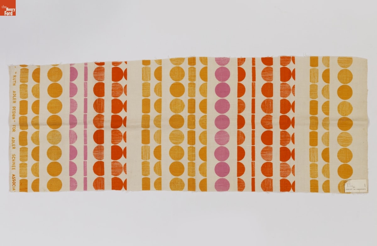 Known for her organic inspiration and love of bold colors, pioneering textile artist Ruth Adler Schnee describes a complete design is one that really "sings." Her furnishing and drapery fabrics were favorites of everyday consumers and leading modern architects alike, including Minoru Yamasaki, Paul Rudolph, and Buckminster Fuller. Adler Schnee's designs are truly timeless -- many of them are still being manufactured today.