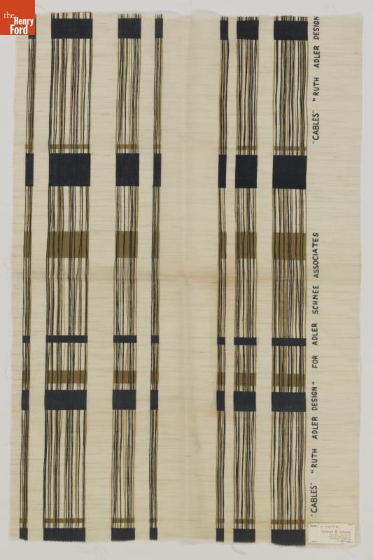 across side of fabric: "CABLES" "RUTH ADLER DESIGN" FOR ADLER SCHNEE ASSOCIATES on paper tag: "Cables" on angelstripe / SCHNEE & SCHNEE / Interior Space Color Planning/ [...]