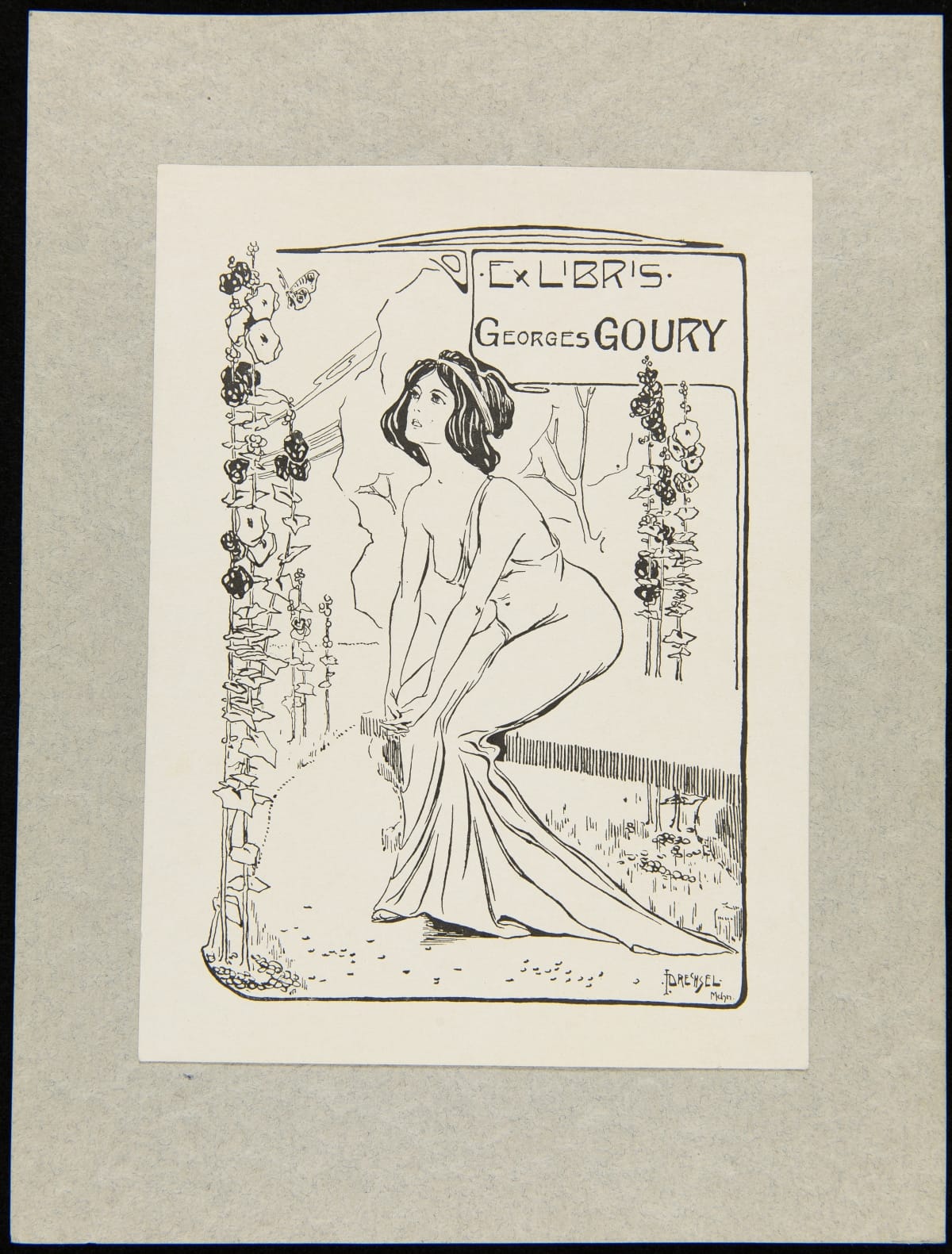 on front: EX LIBRIS / GEORGES GOURY front bottom right corner: F. Dreschel. Mchn. on back of mount: No. 1505, Drechsel.