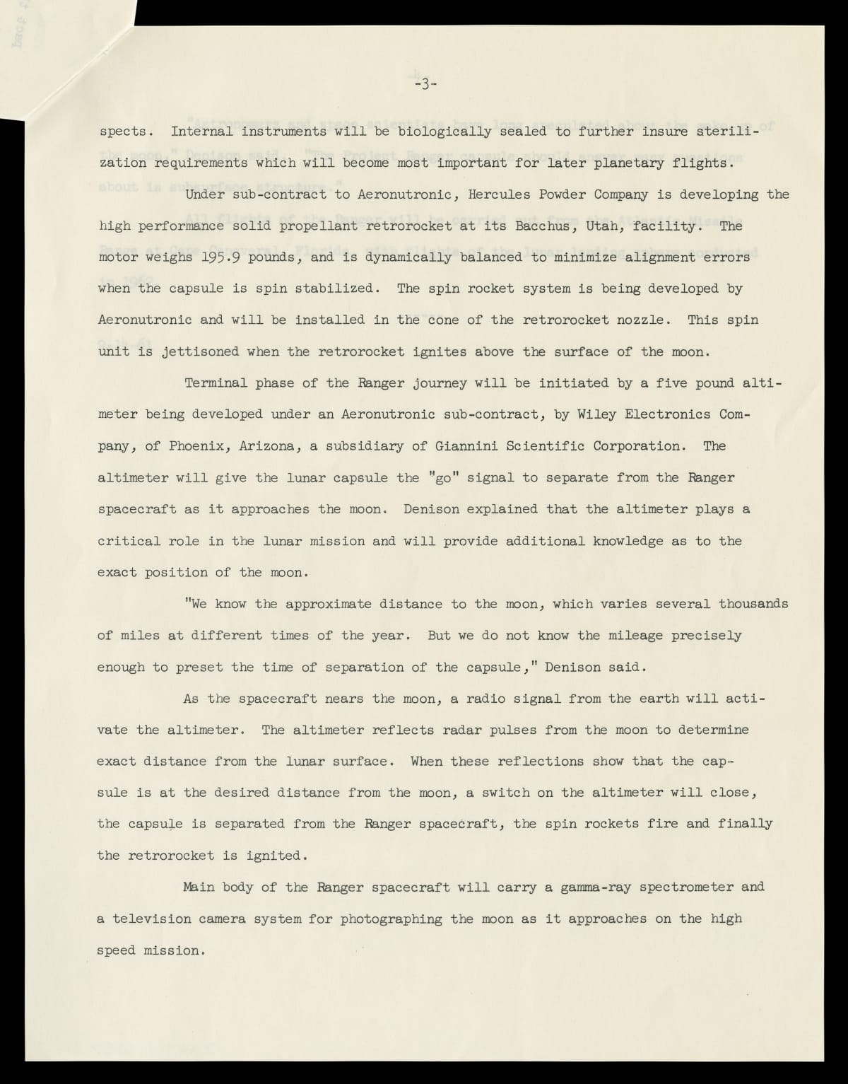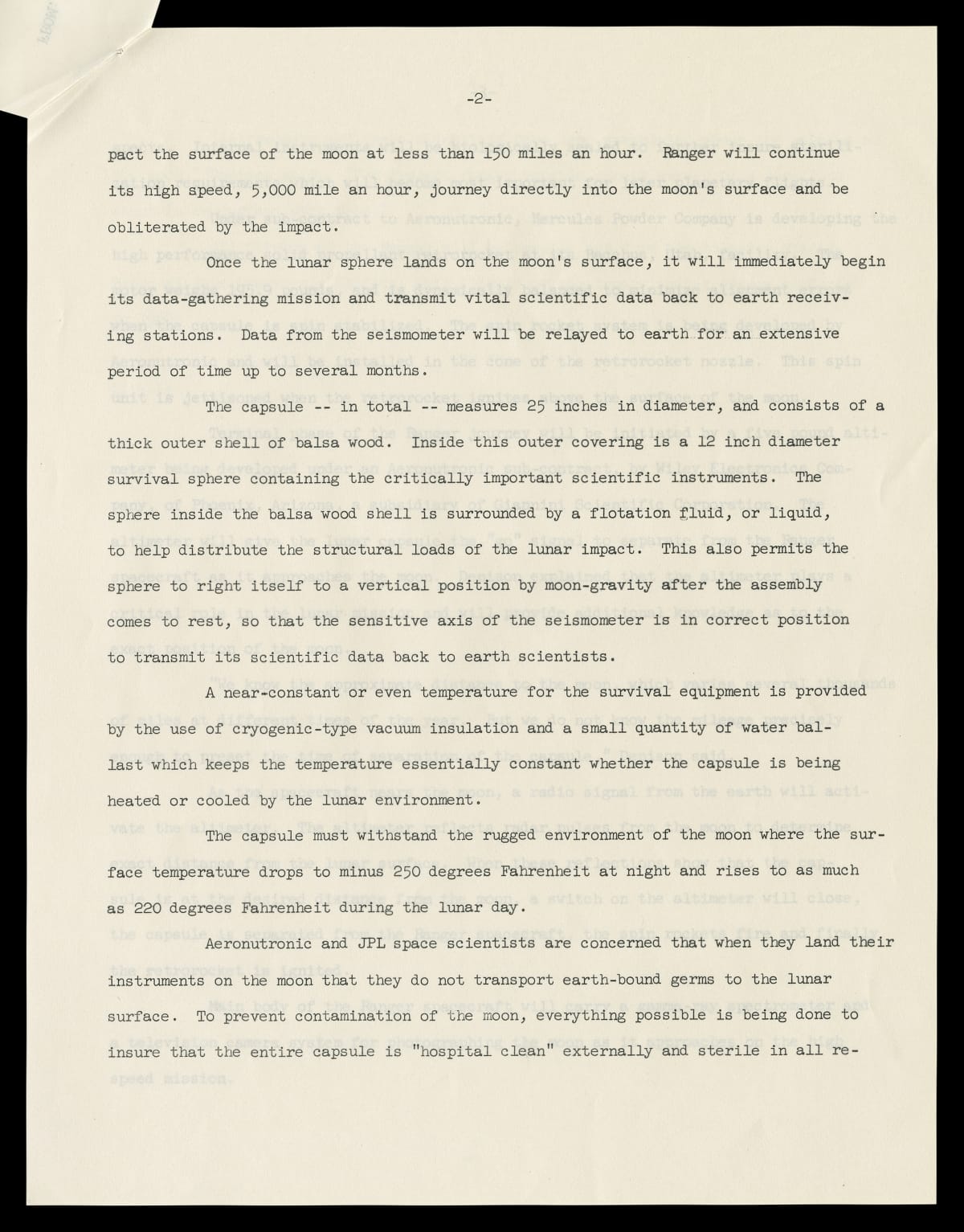 Press Release RE: Lunar Capsule Built by Ford Motor Company Aeronutronic Division, September 14, 1961