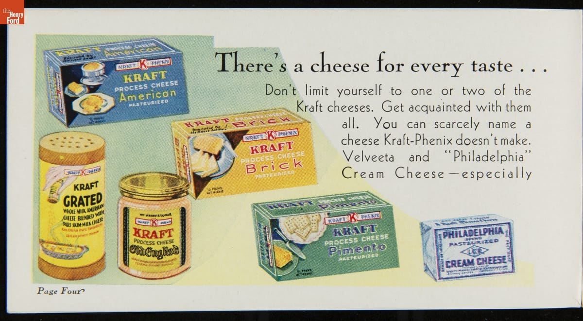 In 1915, J.L. Kraft, co-founder of J.L. Kraft and Bros. Co., developed a way to produce processed cheese requiring no refrigeration. Used in army rations in World War I, its popularity spread across America. The company acquired the Phenix Cheese Company in 1928 and under the name Kraft-Phenix Cheese Company sold many products. But its variety of cheeses were the most popular.