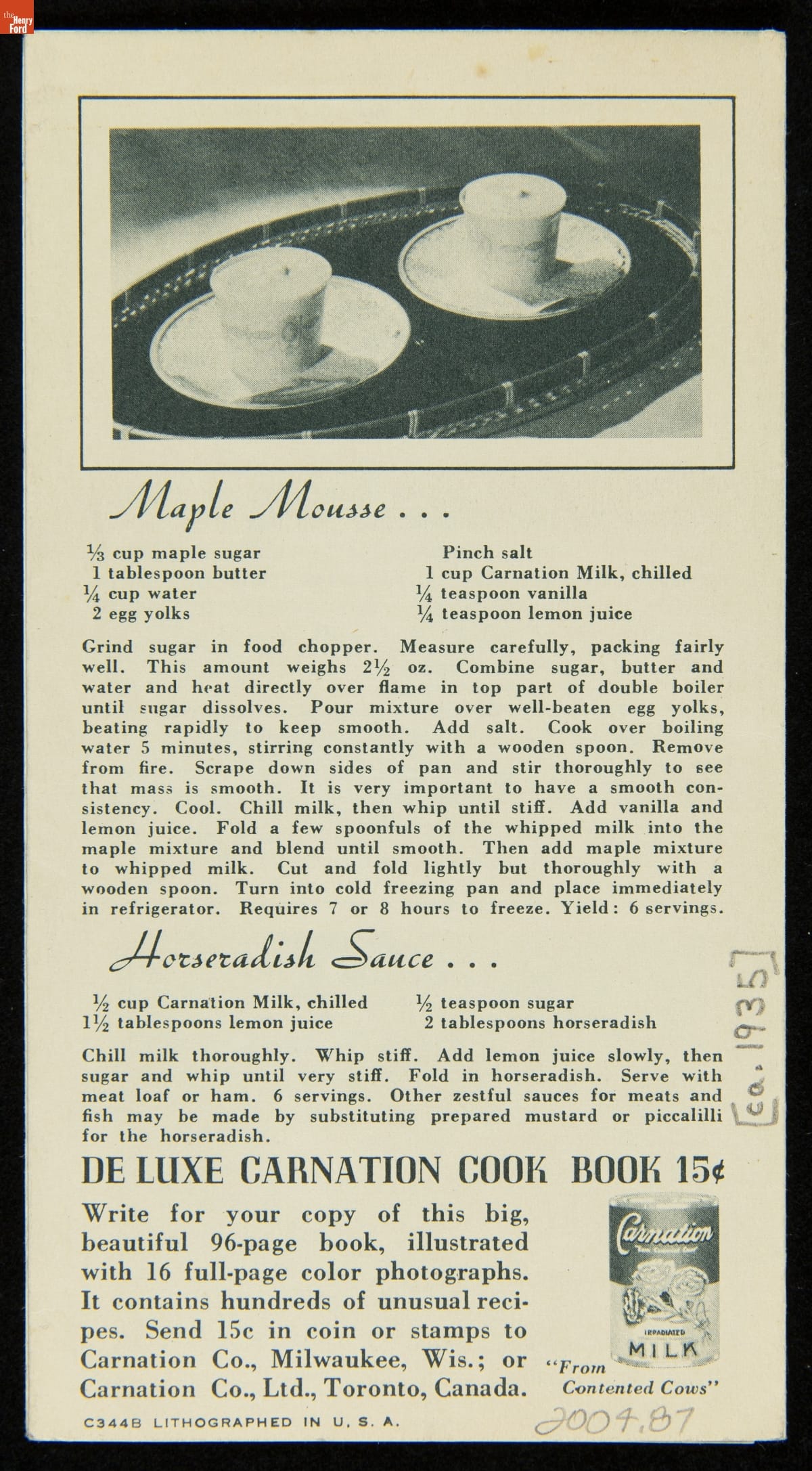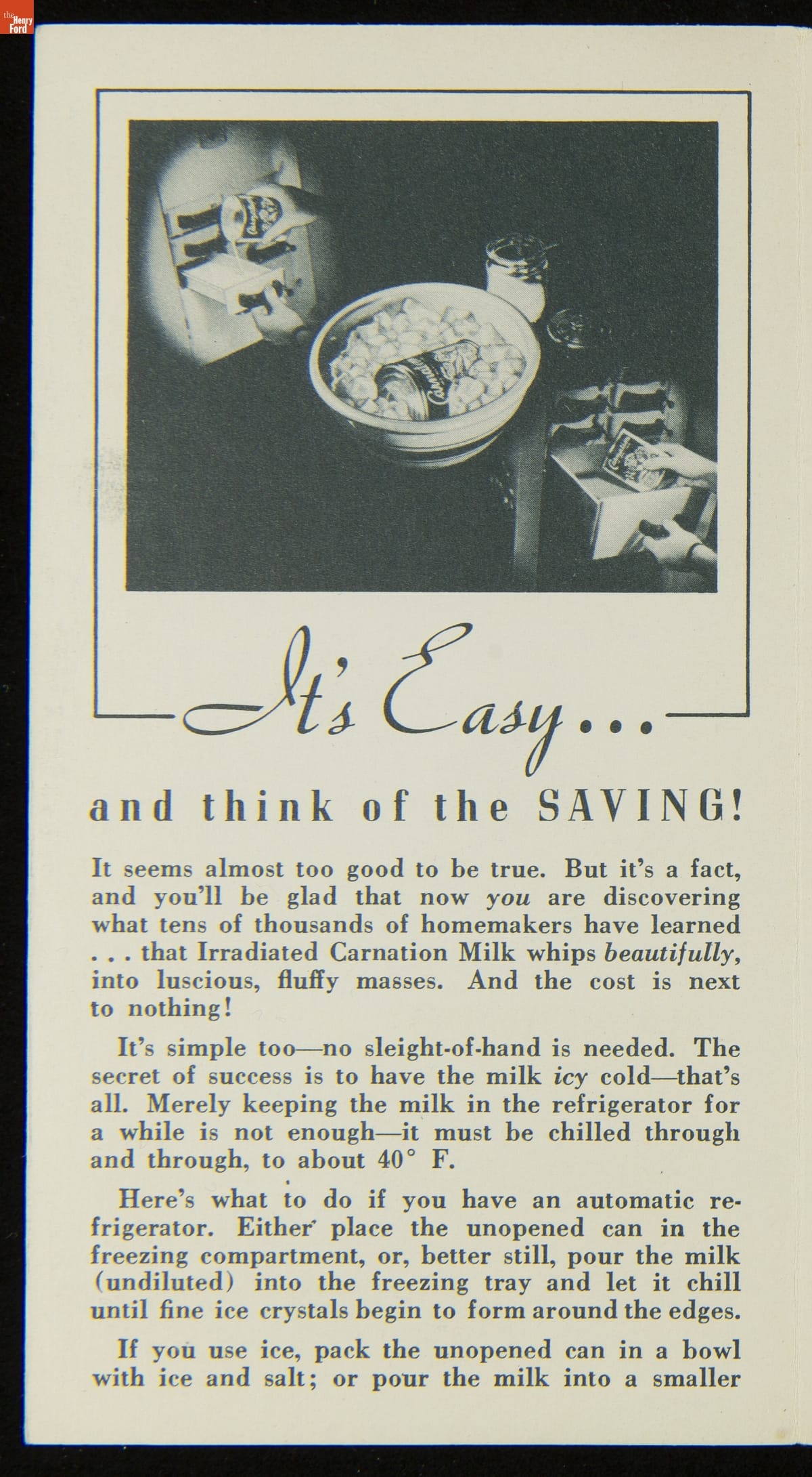 Recipe Booklet, "Carnation Company, It Whips! Irradiated Carnation Milk," circa 1935