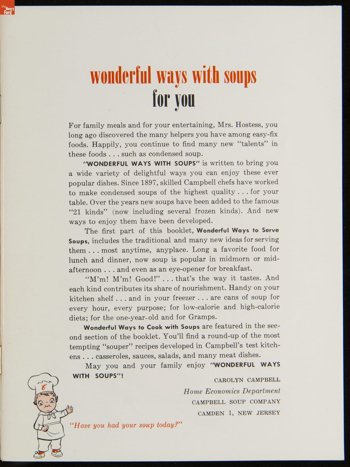 Recipe Booklet, "Wonderful Ways With Soups... From Campbell's," 1958