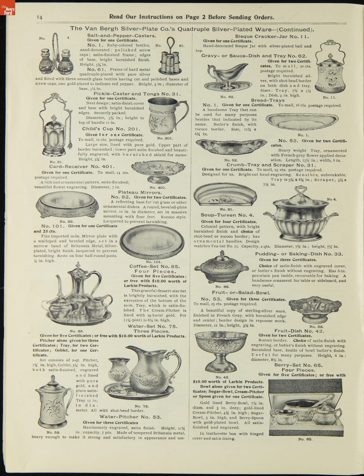 Larkin Company Trade Catalog, "Product and Premium List," January 1908 (58th Edition)