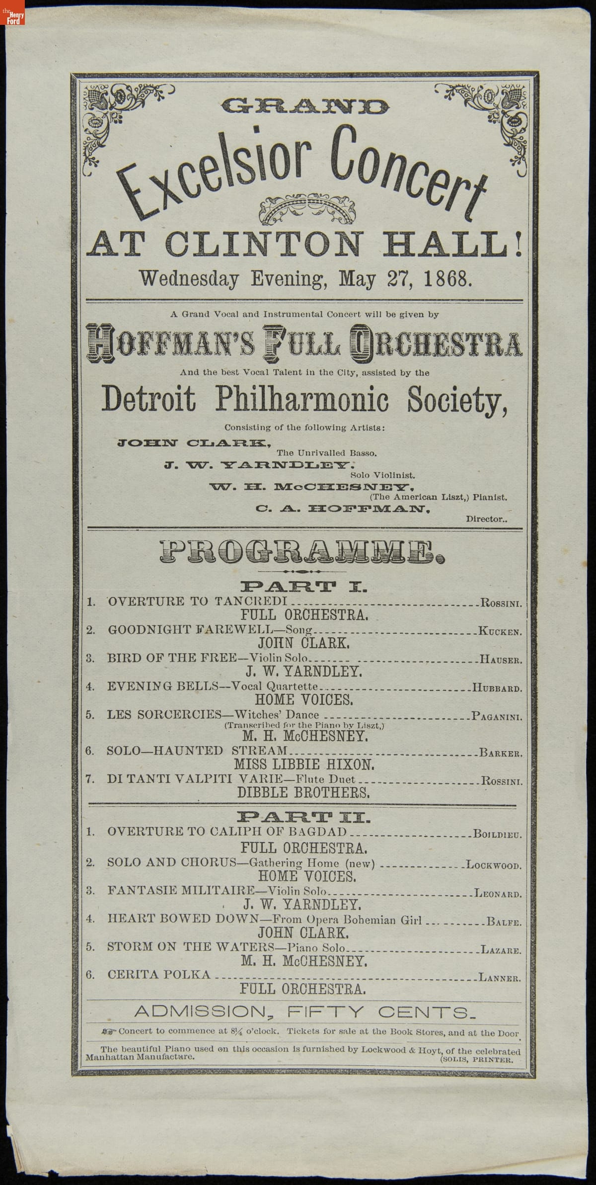 Program, "Grand Excelsior Concert at Clinton Hall," May 27, 1868