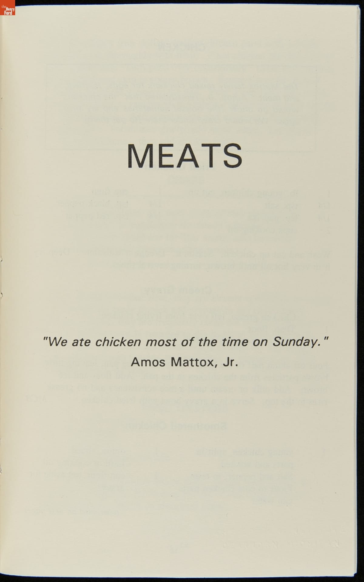 This cookbook contains information and recipes from written sources and the oral histories of Mattox family members and their neighbors. It was created for cooking demonstrations at the Mattox family home originally from Bryan County, Georgia, now in Greenfield Village. The cookbook's title, taken from directly the oral histories, is a proud affirmation of this African American family's resourceful lifestyle.