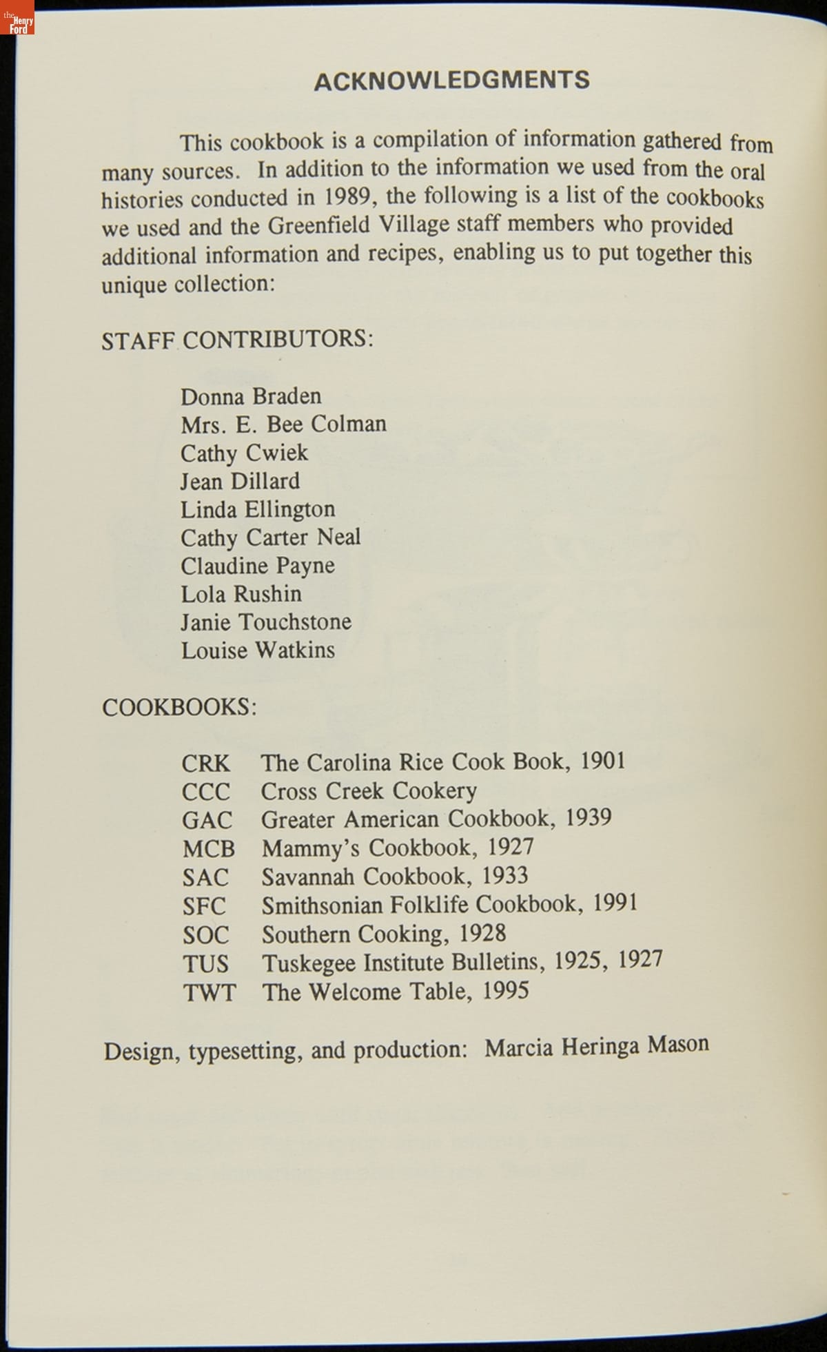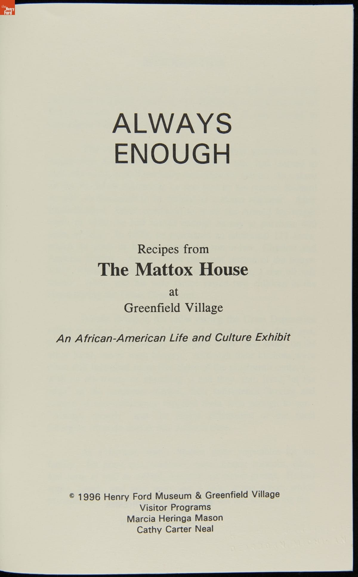 "Always Enough, Recipes from the Mattox House in Greenfield Village," 1996