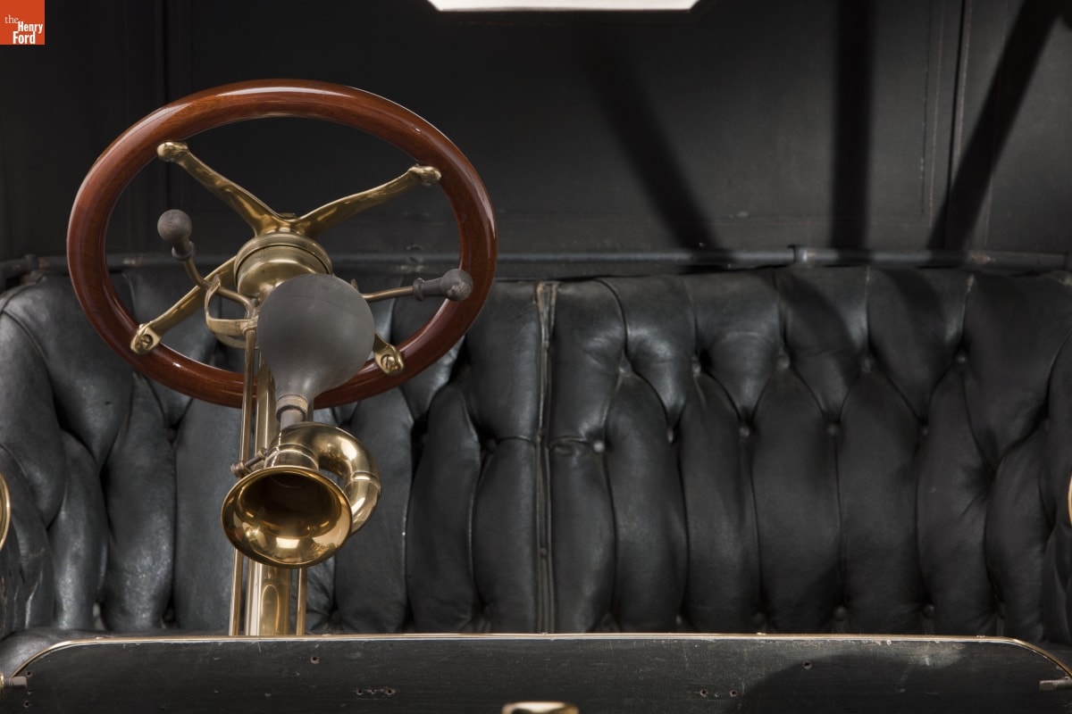 Two-seater runabouts like this 1906 Ford Model N were favored by middle-class Americans who could afford one. They were fast and rugged. Most runabouts featured one- or two-cylinder engines and bicycle-style chain drives. But this Ford Model N offered four cylinders and a shaft drive, plus it cost less. At $500, it became the bestselling car in America.