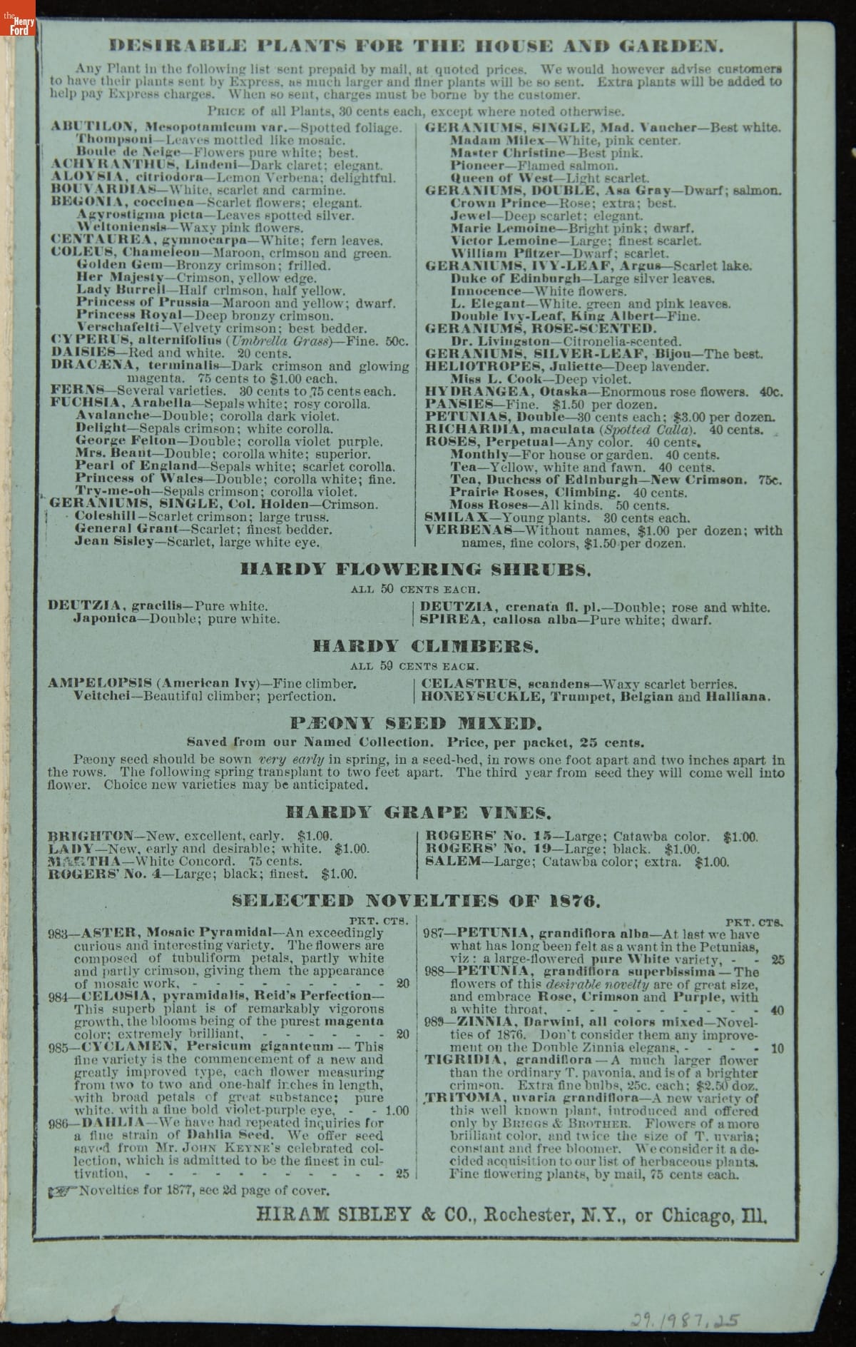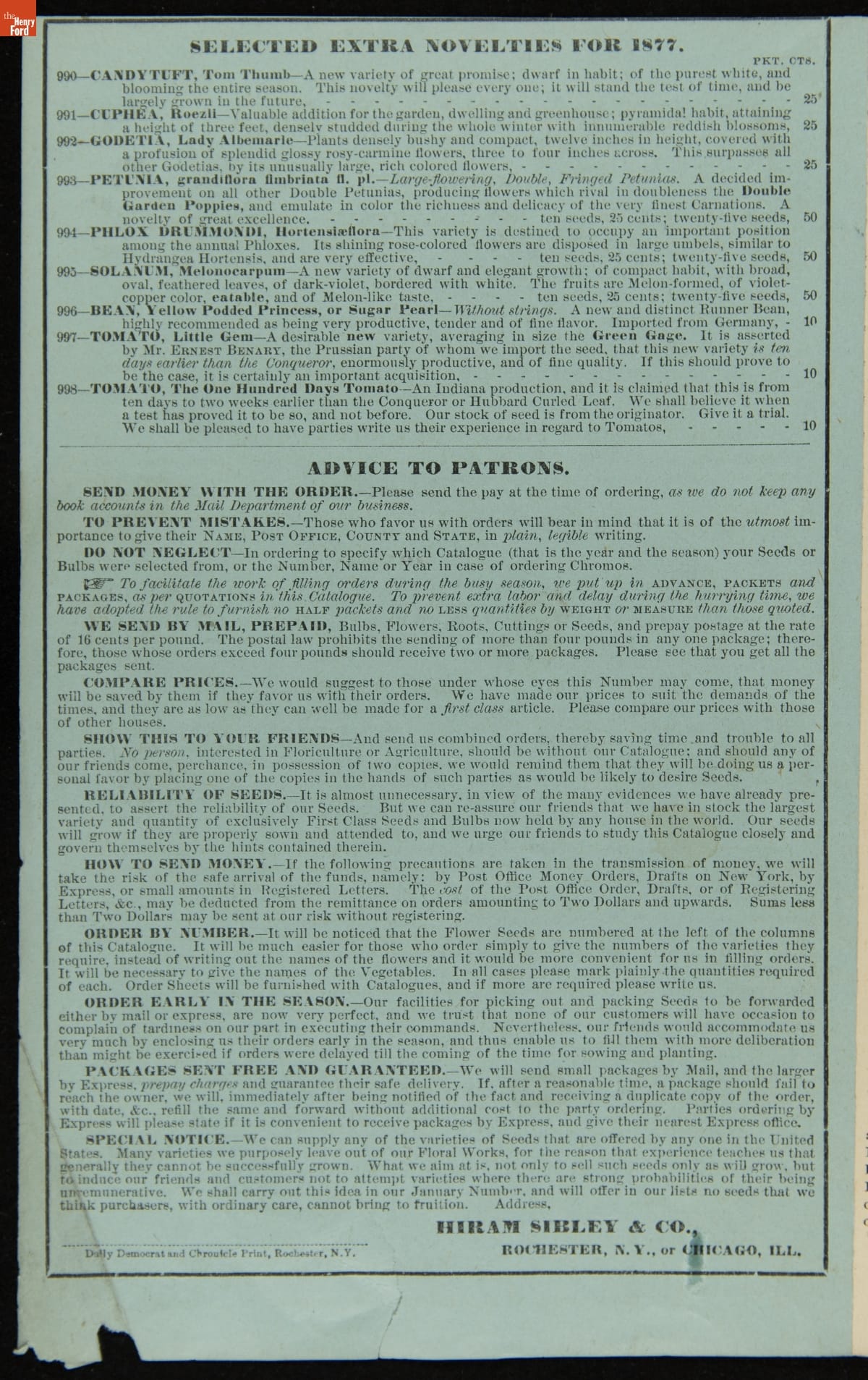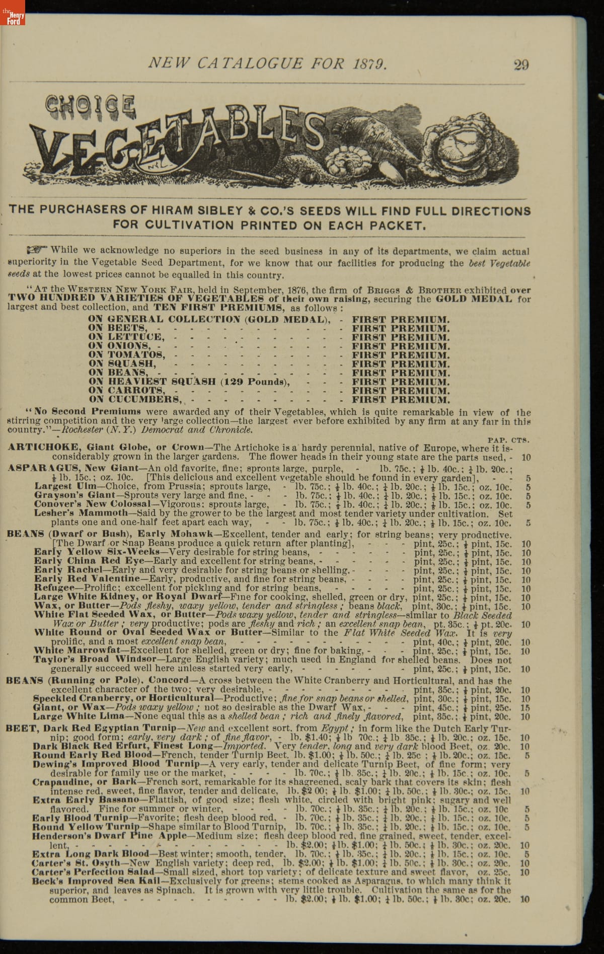 Hiram Sibley & Co. Catalogue of Garden, Field and Flower Seeds, 1879