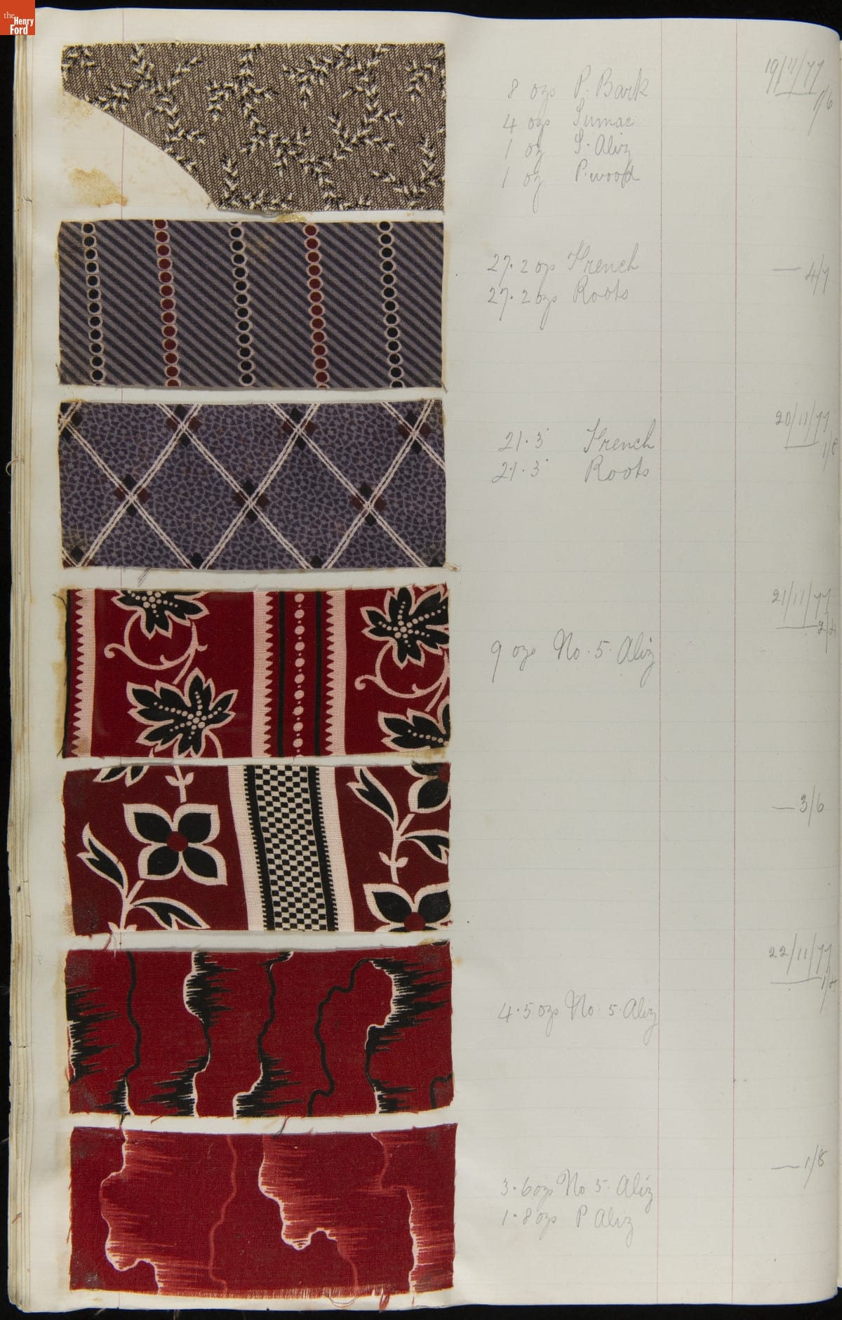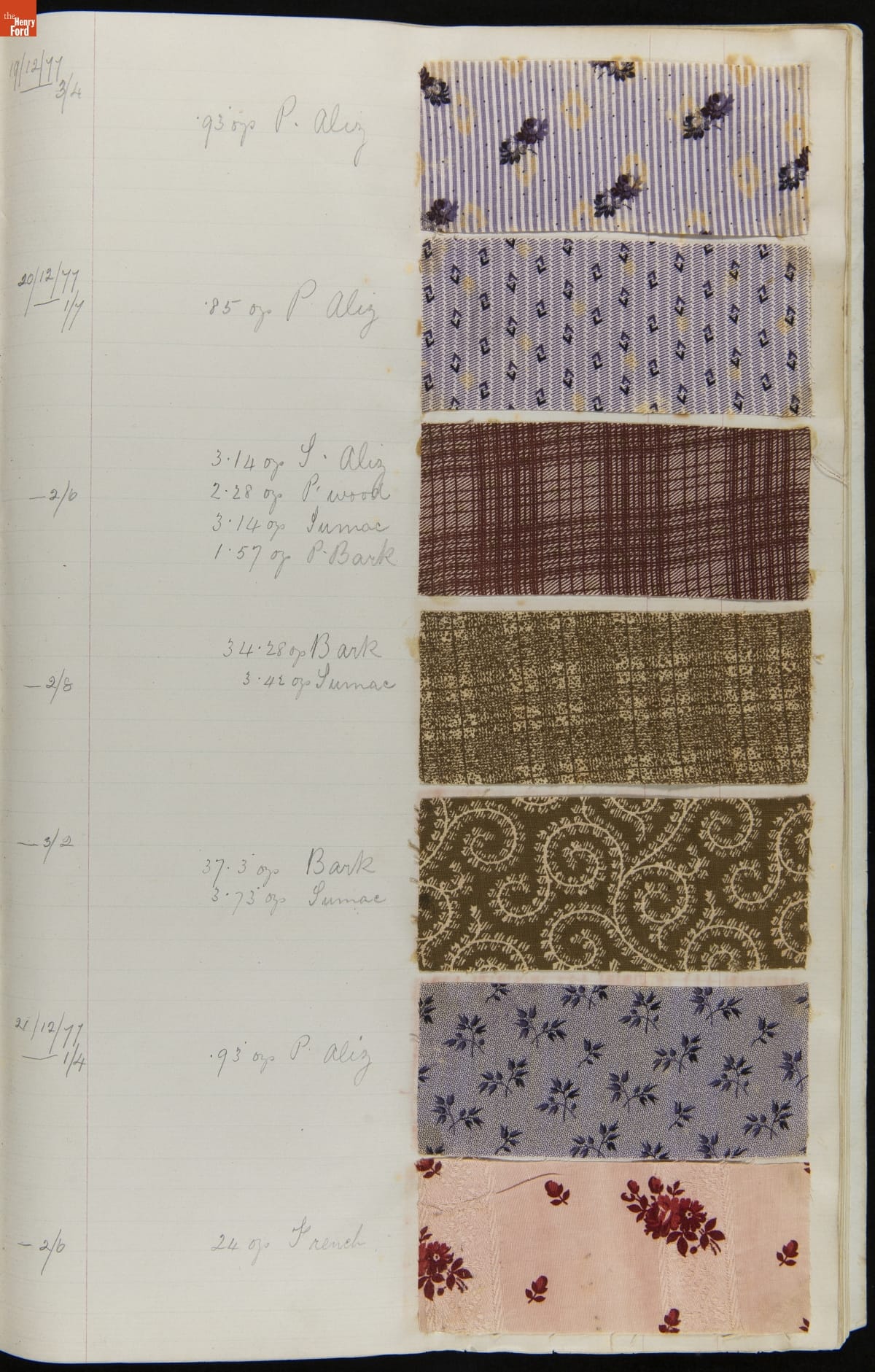 Washington Anderton's Textile Samples Notebook, Cocheco Mfg. Co., November to December 1877