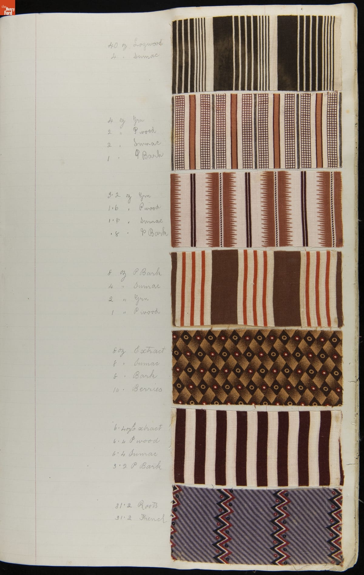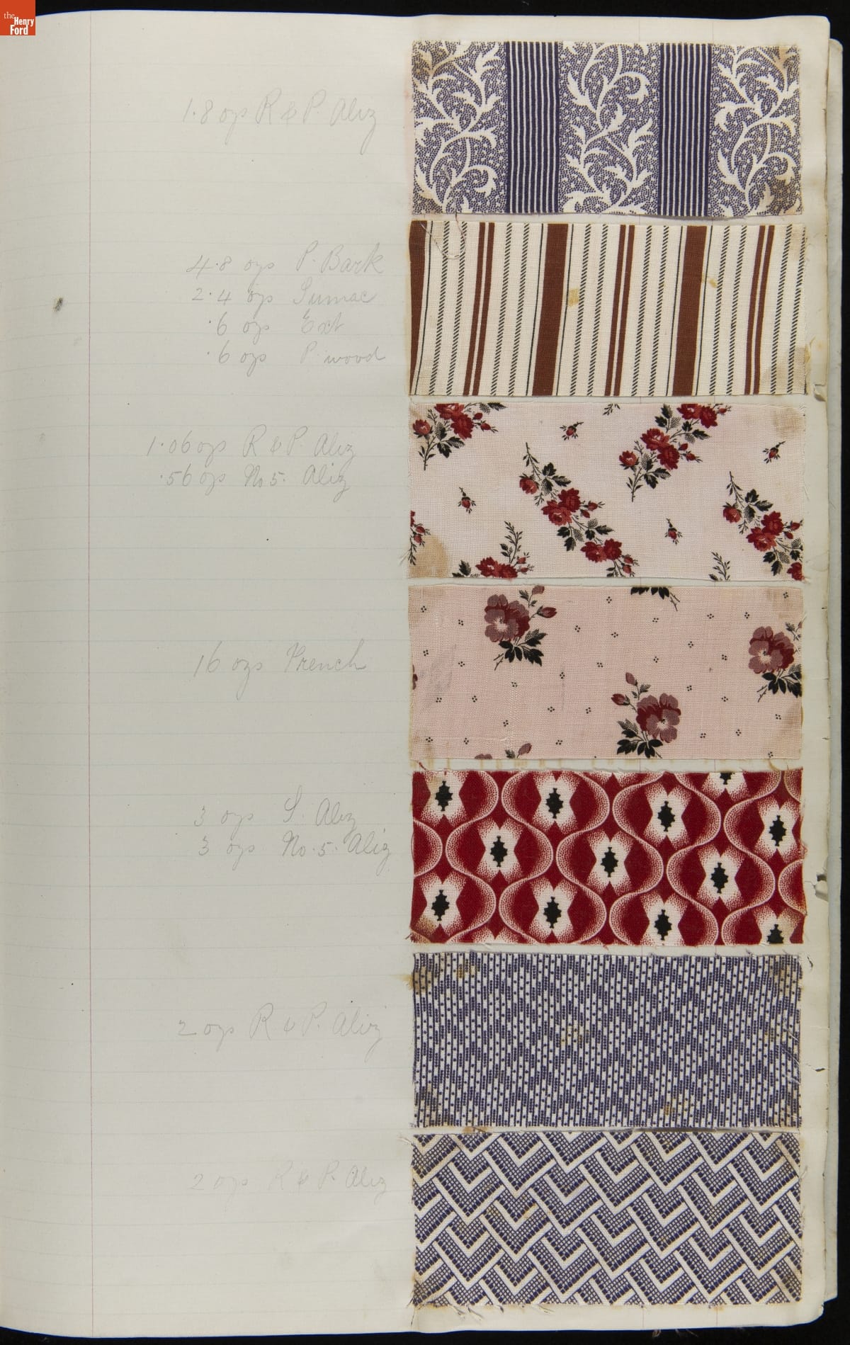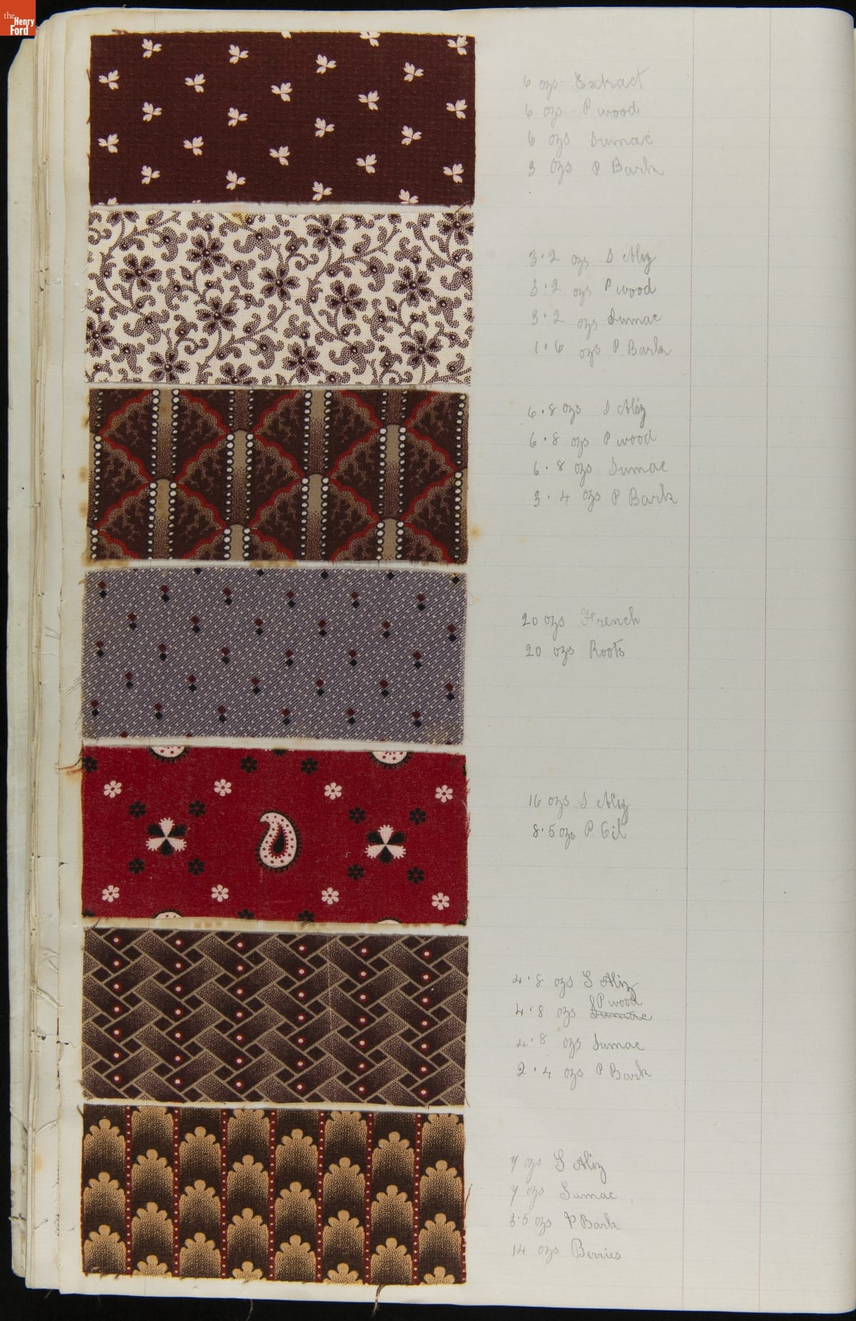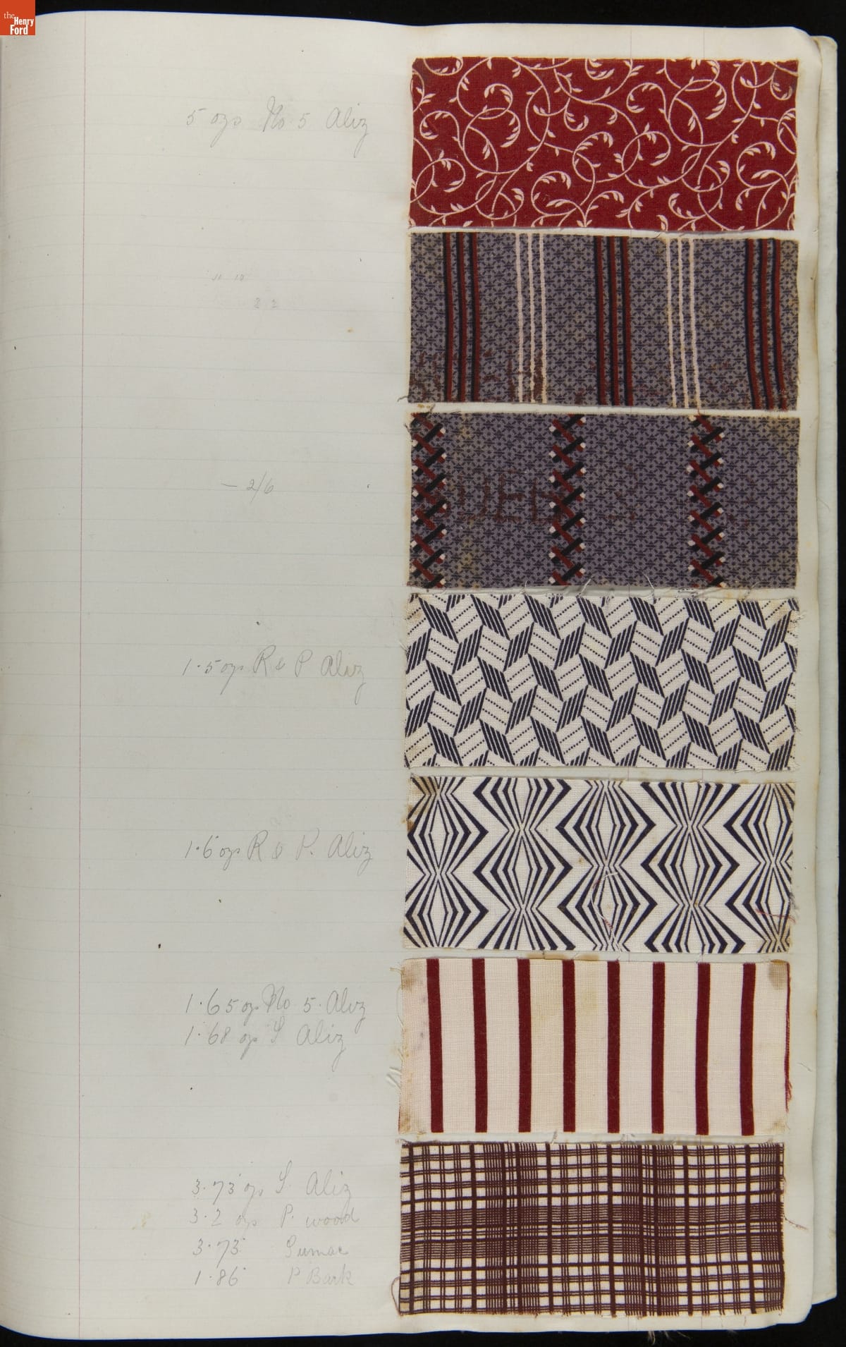 Textile samples notebook created by Washington Anderton for Cocheco Manufacturing Company, Lawrence, Massachusetts.