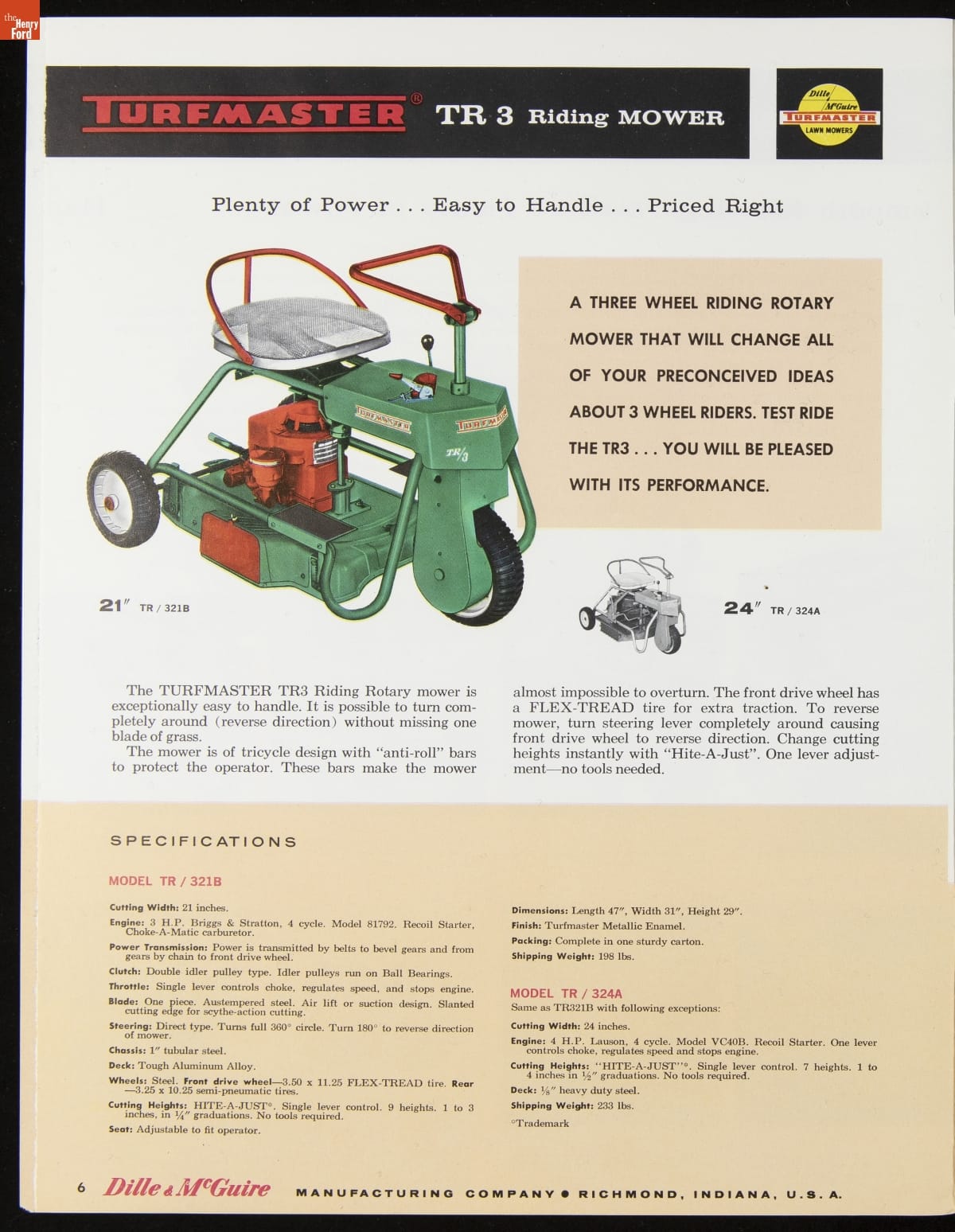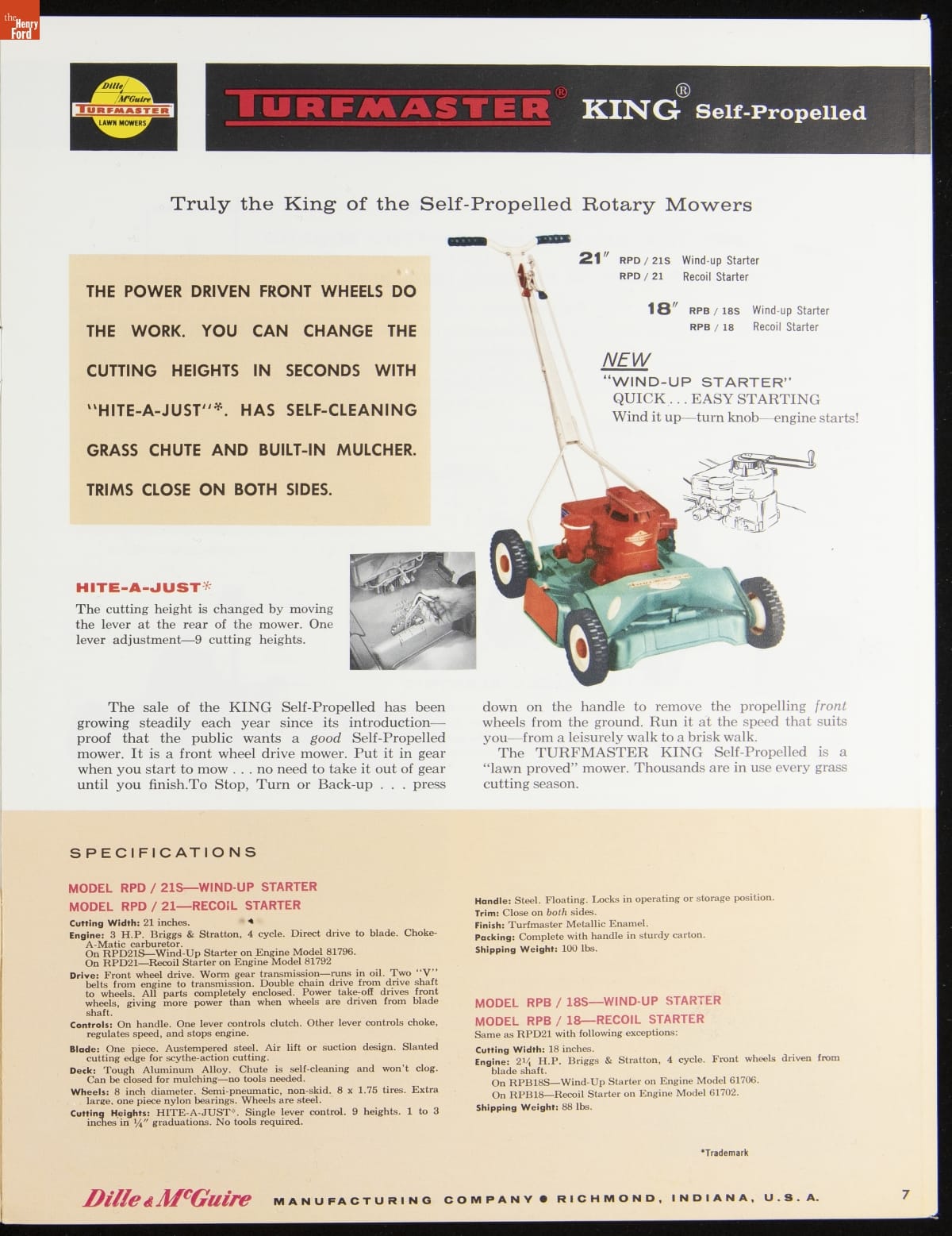 Dille & McGuire Manufacturing Company Catalog, "Turfmaster Lawn Mowers," 1960