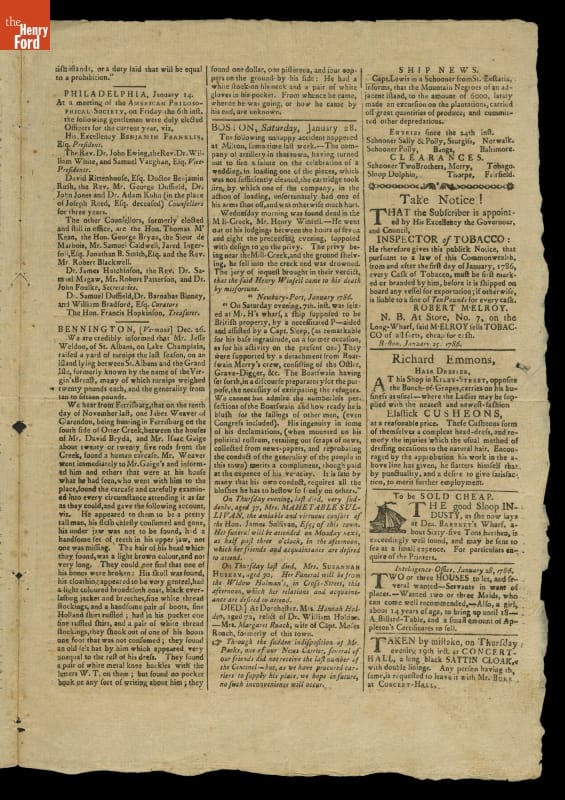 The Massachusetts Centinel Newspaper for January 28, 1786