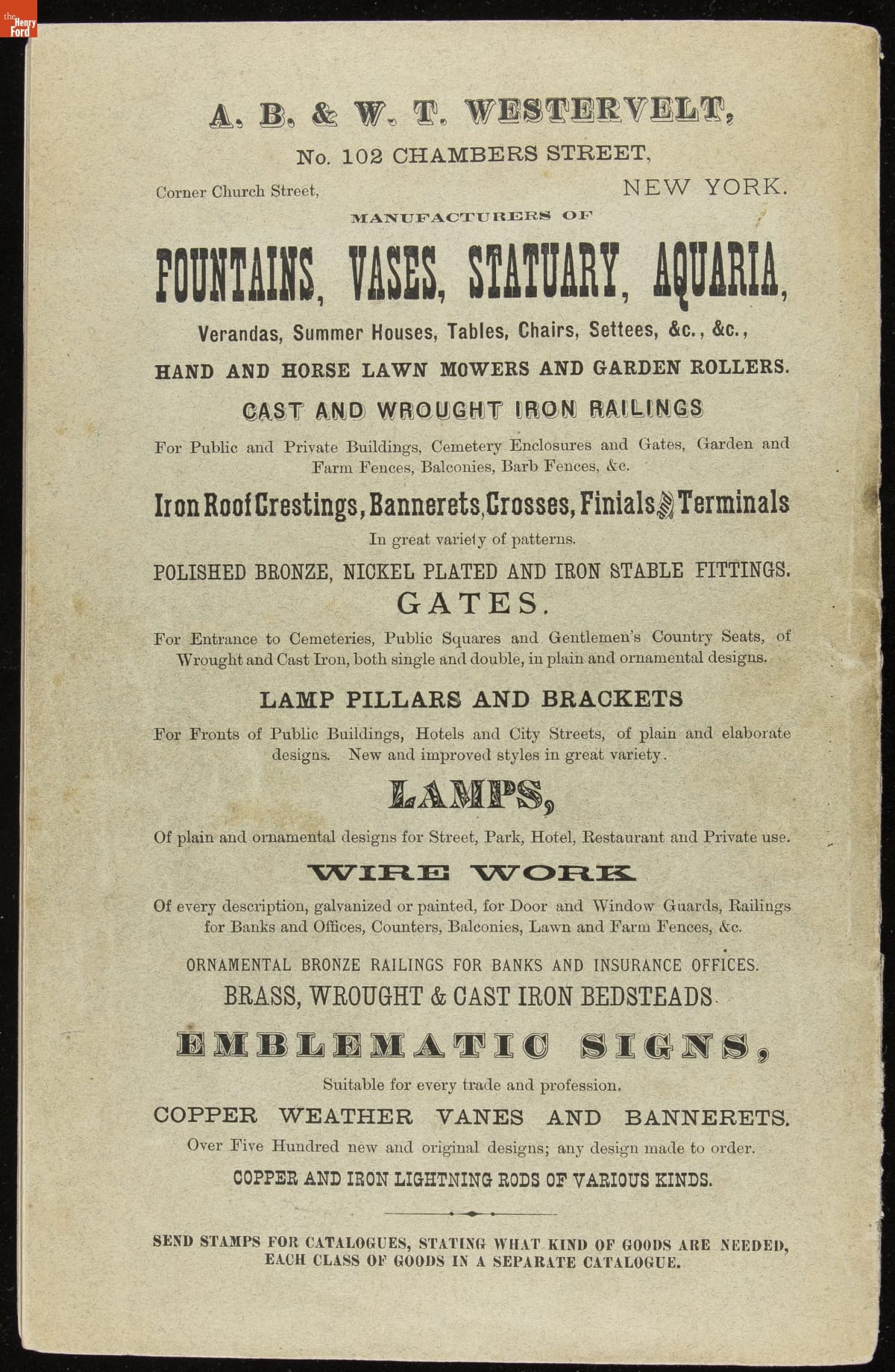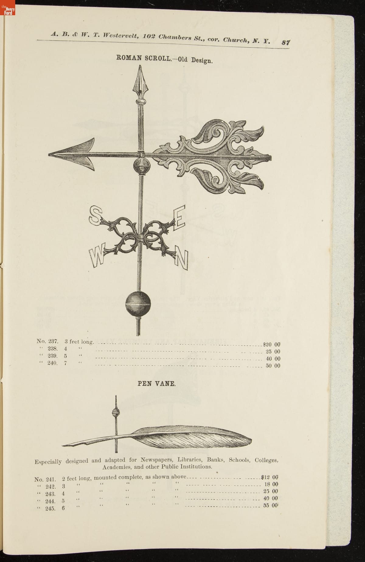 A.B. & W.T. Westervelt Catalog, "Illustrated Catalogue and Price List of Copper Weather Vanes, Bannerets, and Finials," 1883