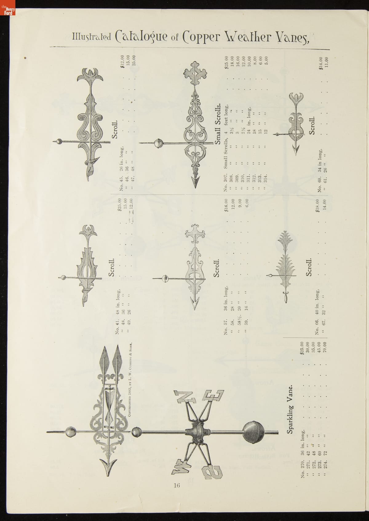Catalogue of Weather Vanes Manufactured by L.W. Cushing and Sons, 1883 / page 16