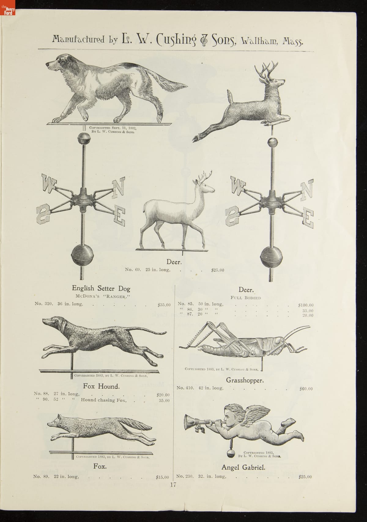 Catalogue of Weather Vanes Manufactured by L.W. Cushing and Sons, 1883 / page 17