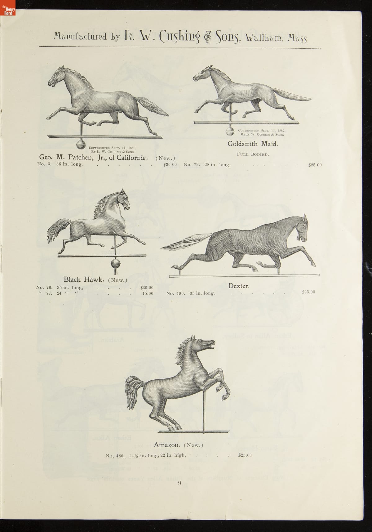 Catalogue of Weather Vanes Manufactured by L.W. Cushing and Sons, 1883 / page 9