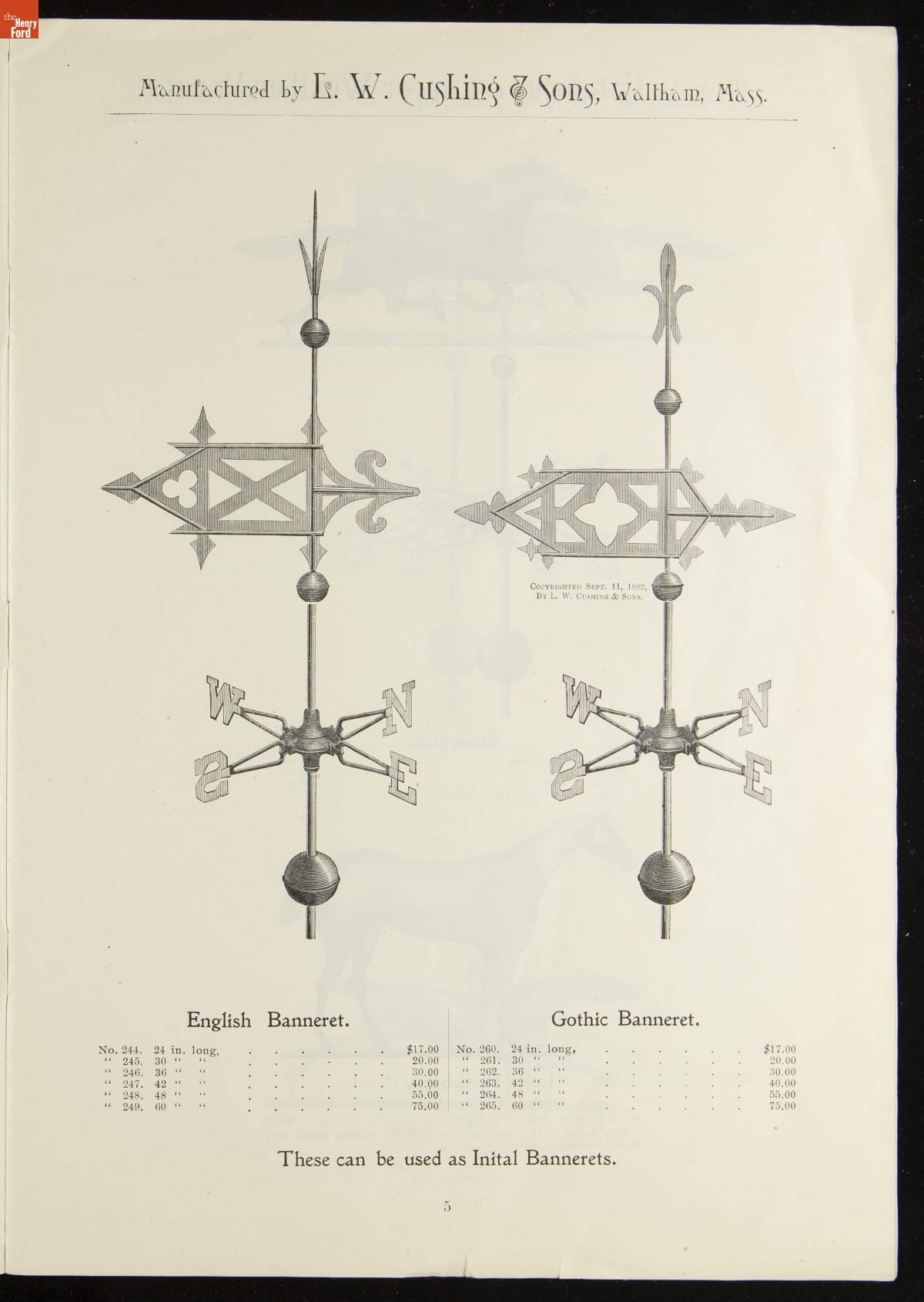 Catalogue of Weather Vanes Manufactured by L.W. Cushing and Sons, 1883 / page 5
