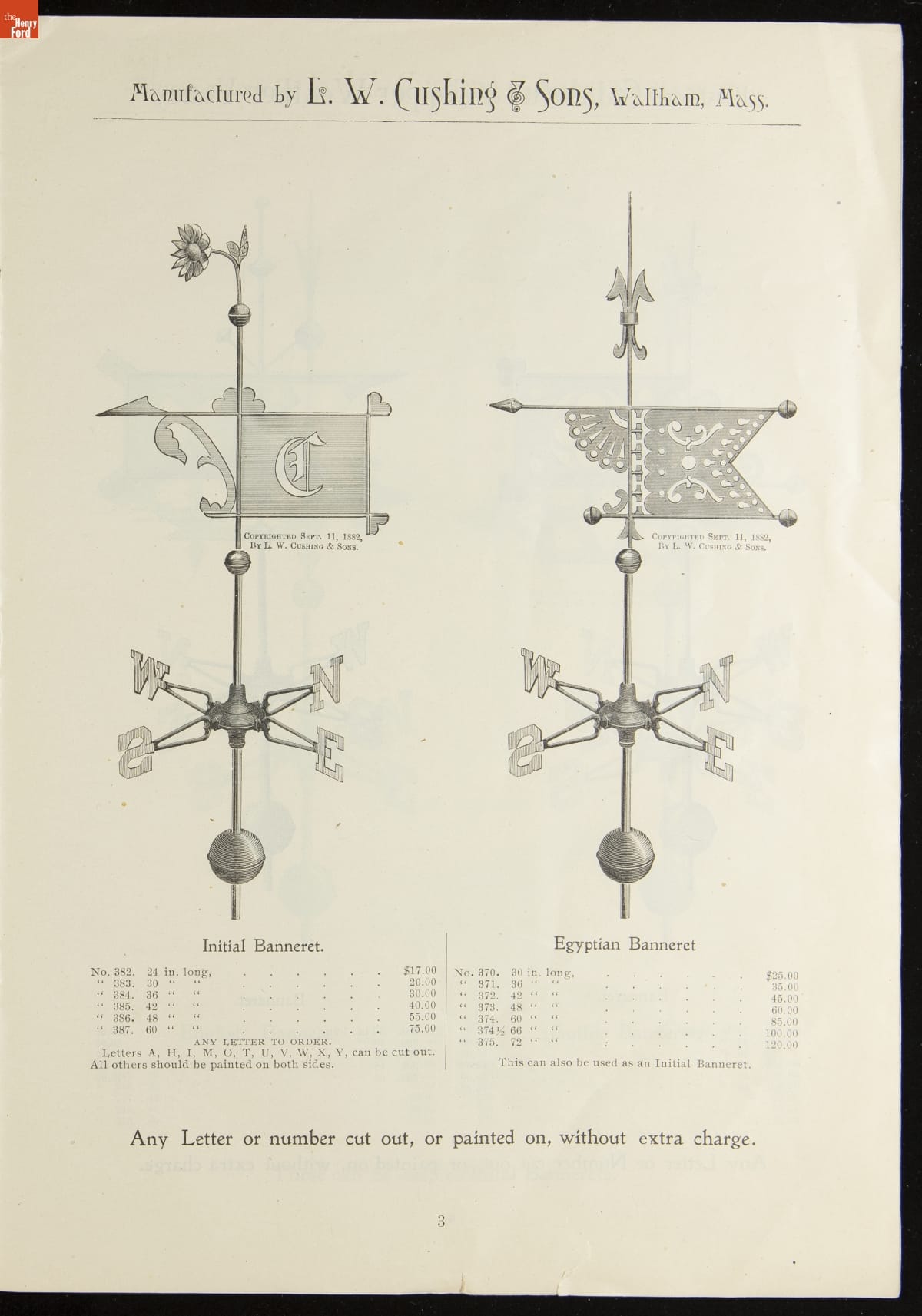 Catalogue of Weather Vanes Manufactured by L.W. Cushing and Sons, 1883 / page 3