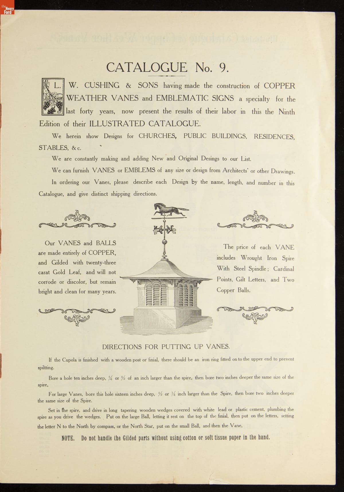 Catalogue of Weather Vanes Manufactured by L.W. Cushing and Sons, 1883 / page 1