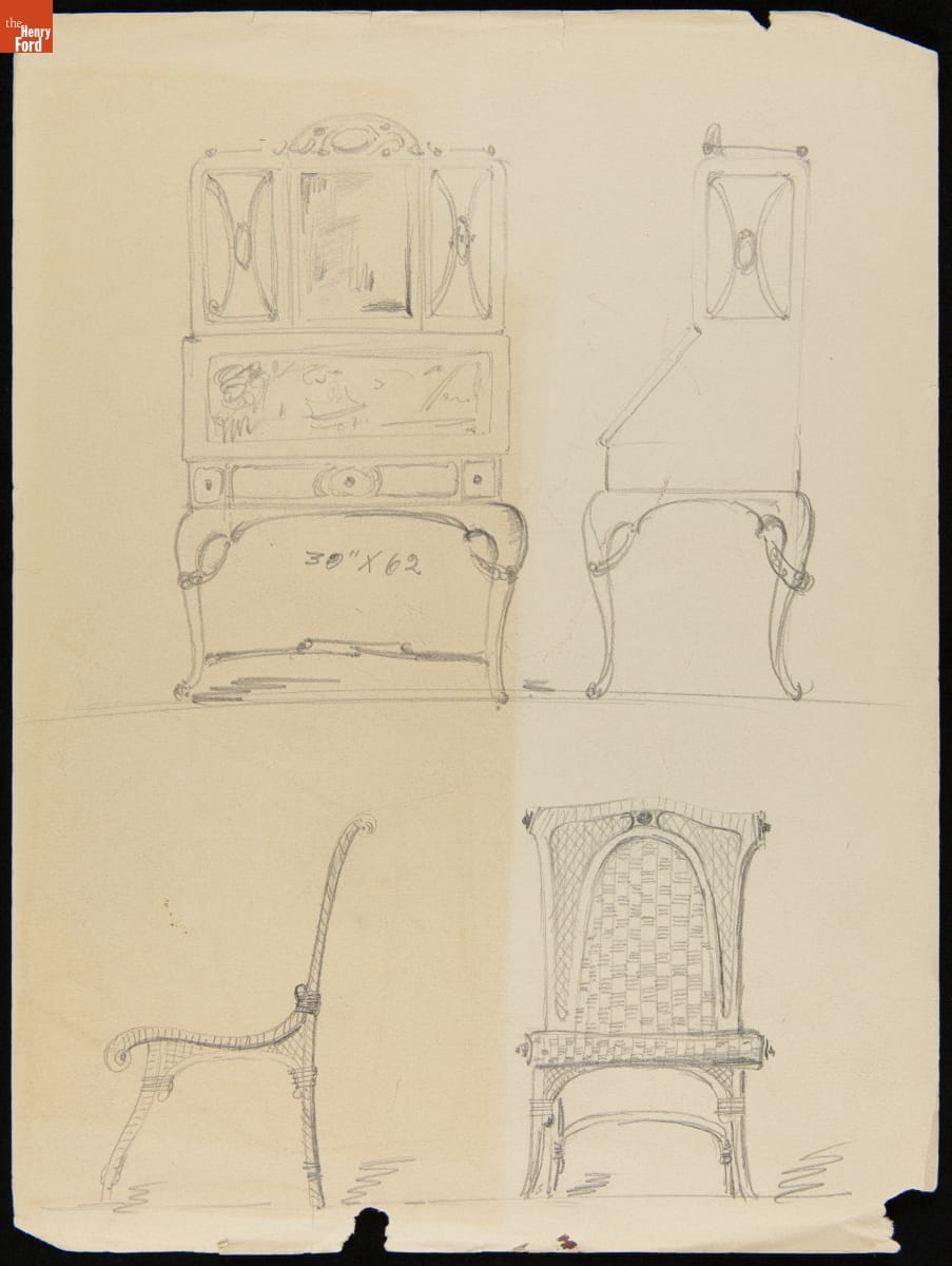 Design Drawing of Furniture for Fair Lane Estate, 1921-1923
