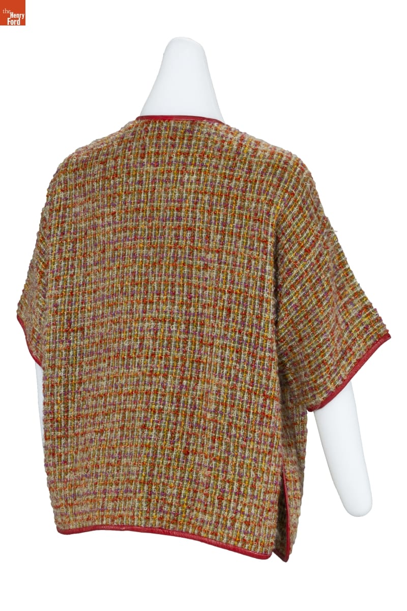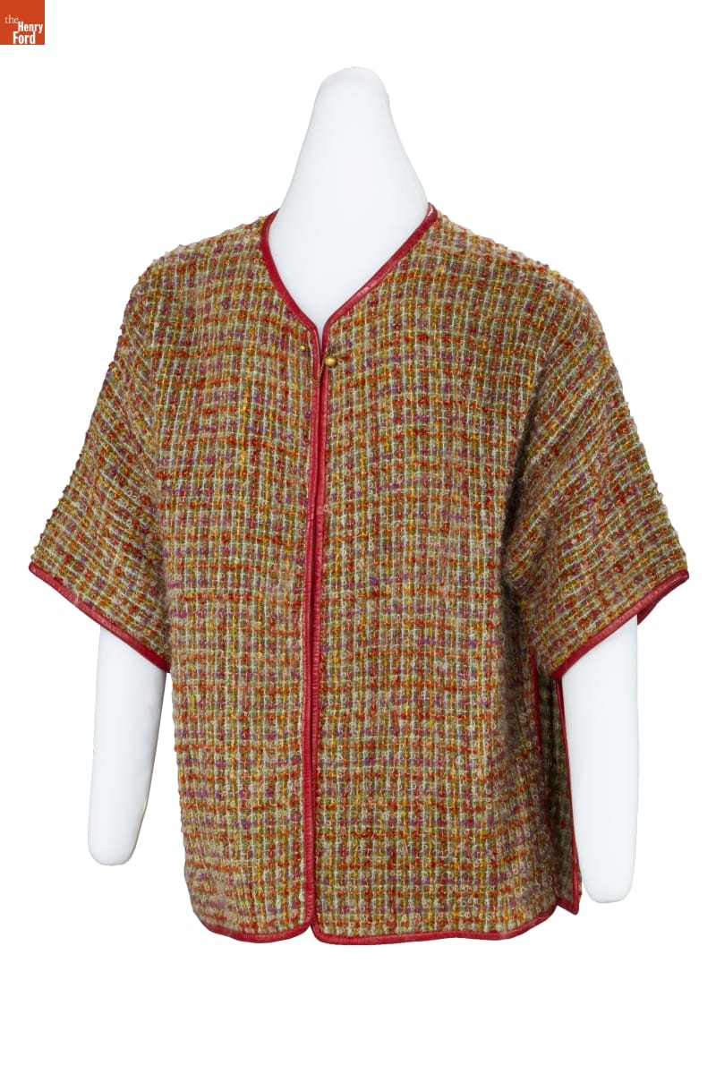 The fabric for jacket was made by Bernat Klein. The jacket was designed by Bonnie Cashin and made by Sills & Co.
