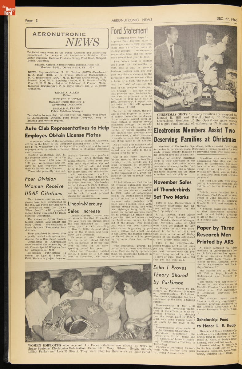 Aeronutronics News, Volume 1, March-December 1960