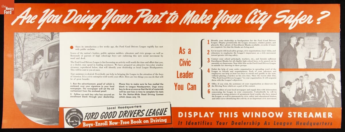 Ford Good Drivers League Brochure, "Headquarters for Youth in Your Community," 1940