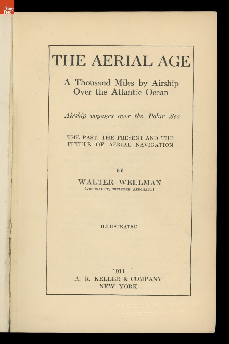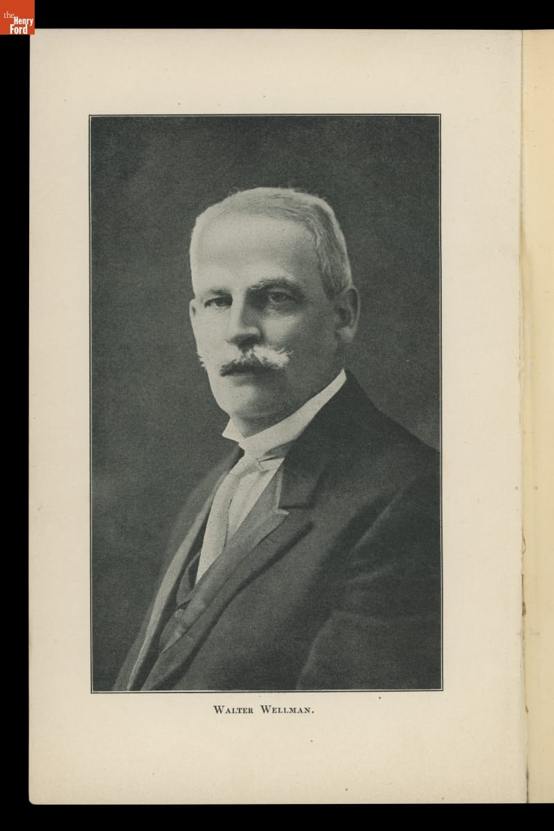Walter Wellman was an American journalist, adventurer, and self-styled expert on an array of subjects. In the 1890s and early 1900s, the public eagerly read about his unsuccessful attempts to reach the North Pole (by sled and airship). Wellman later tried to cross the Atlantic in the refurbished airship used in his polar expeditions. He detailed these adventures in his book, The Aerial Age.
