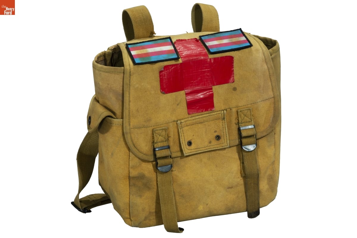 Miley Kirby came out as a transwoman publicly during Detroit's police brutality protests in the summer of 2020. She applied trans flag patches to her medic bag, which held supplies used to provide medical care to fellow protestors. Kirby recalled that the people she met at the protests encouraged her to embrace her trans identity and find her voice while she marched for justice.