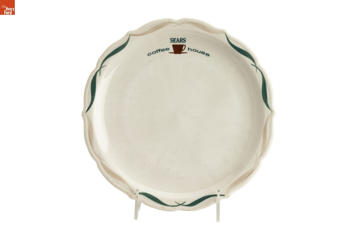 Many Sears department stores during the mid-20th century featured in-store cafeterias. Customers could stop in for a quick cup of coffee and a bite to eat or sit down for a meal after a long day of shopping. Employees served food on durable, vitreous china plates, like these, emblazoned with the Sears Coffee House logo.