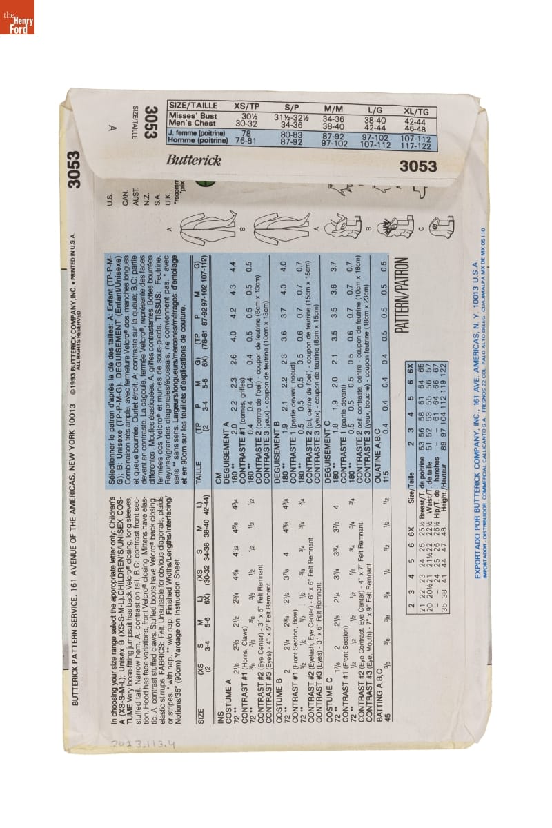 Butterick 3053, Adult and Child Dinosaur Costume Pattern, Used by Emily Nietering, 1993
