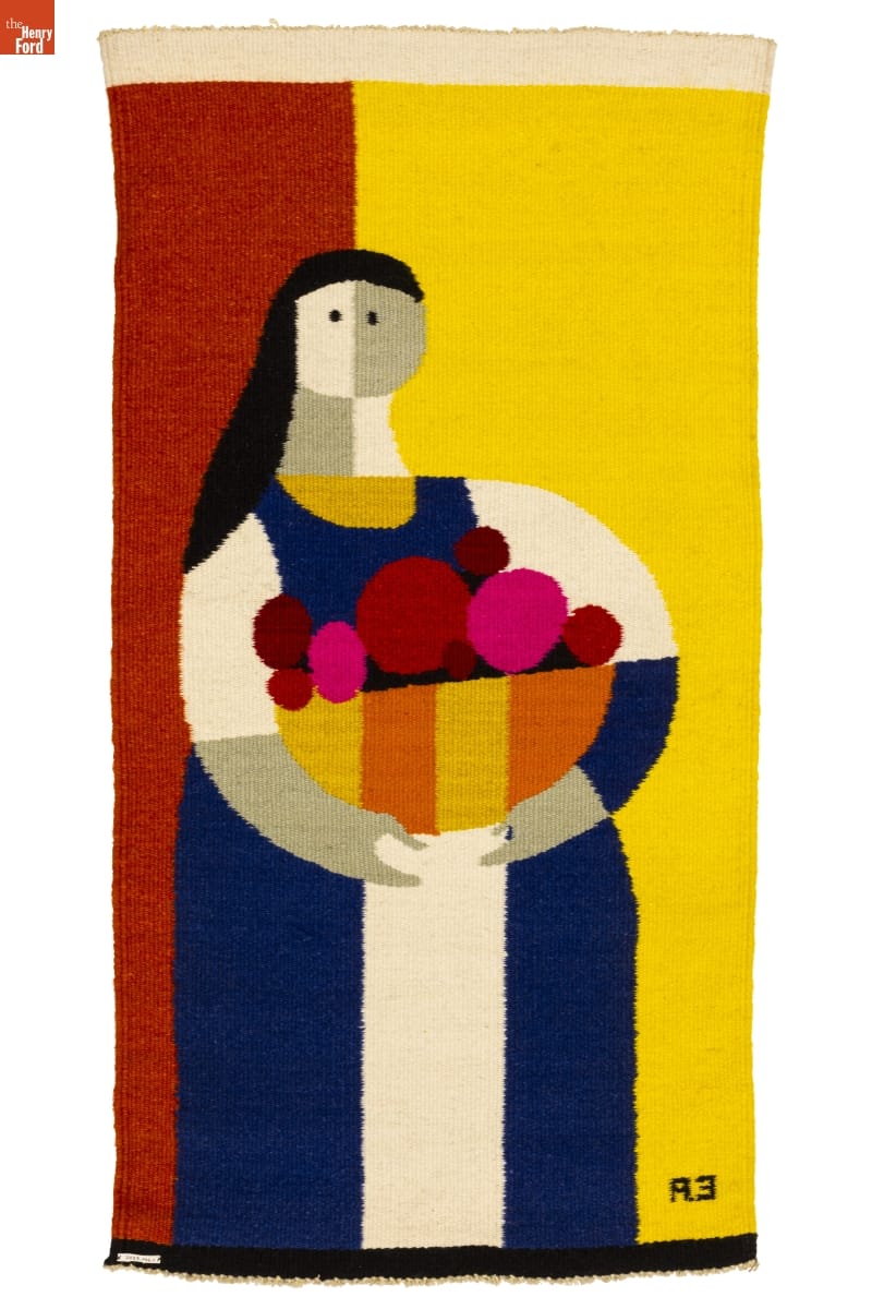 Evelyn Ackerman's work epitomizes the handcrafted modernism of postwar California design. Her design practice was wide-ranging, including mosaic, woodcarving, metalwork, textiles, and more. Evelyn designed numerous woven hangings for ERA Industries--a business owned by Evelyn and her husband, ceramicist Jerry Ackerman--that were handcrafted by skilled weavers in Mexico to Evelyn's specifications. The "Campesina Tapestry" became one of the company's best-selling products.