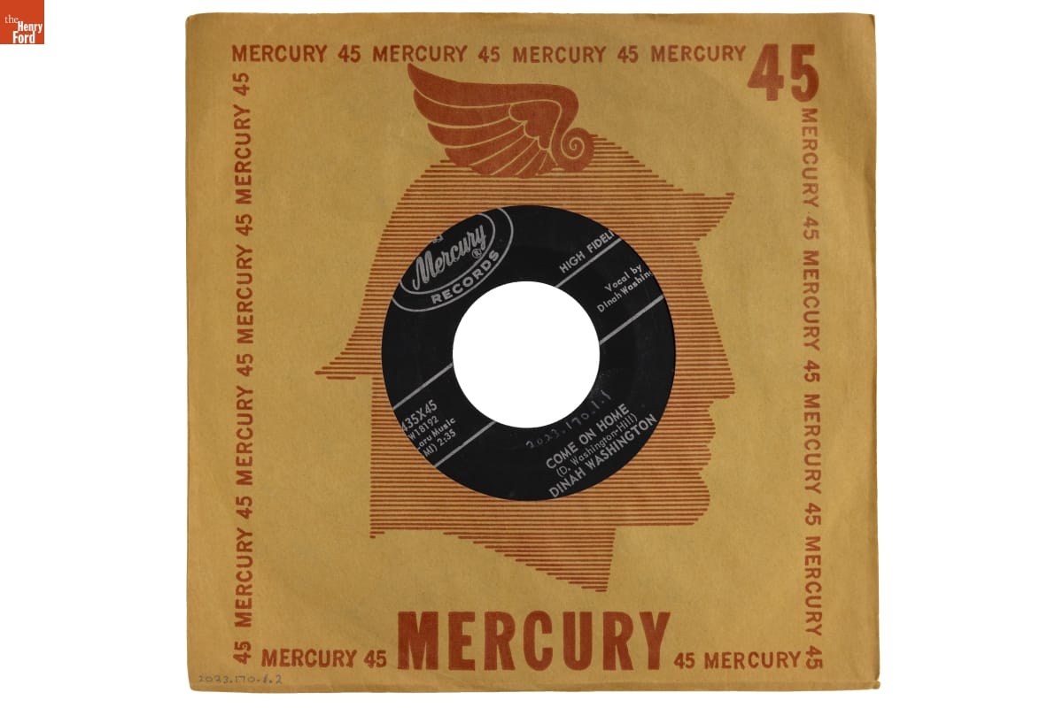 on one side of record: Mercury (R) / RECORDS / HIGH FIDELITY / 71435x45 / YW18190 / E.B. MARKS / (BMI) 2:35 / Vocal by / Dinah Washington / WHAT A DIFF'RENCE A / DAY MAKES / (Grever-Adams) / DINAH WASHINGTON / MERCURY RECORD CORPORATION - MADE IN U.S.A. on one side of record: Mercury (R) / RECORDS / HIGH FIDELITY / 71435x45 / YW18192 / DeLaru Music / (BMI) 2:35 / Vocal by / Dinah Washington / COME ON HOME / (D. Washington - Hill) / DINAH WASHINGTON / MERCURY RECORD CORPORATION - MADE IN U.S.A. on either side of record cover: MERCURY 45 (repeated)