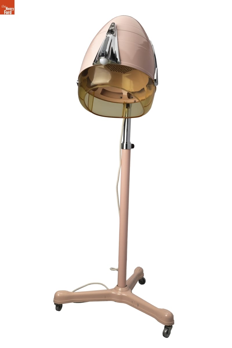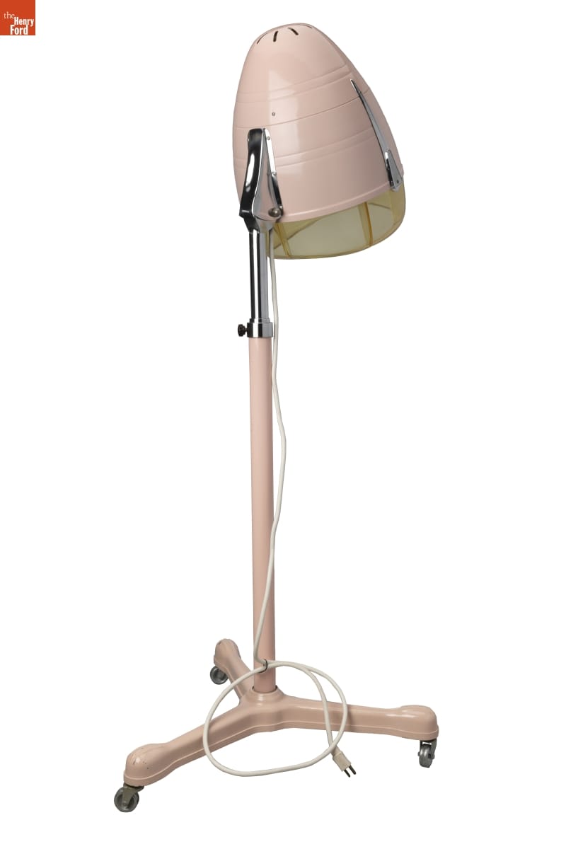 Velma Truant (1928-2021) began her hairstyling career at the Detroit Hudson's department store salon in the late 1940s. When she left Hudson's in 1963 to care for her young daughter, Truant acquired this hair dryer and a matching chair and set up a salon in the basement of her Allen Park, Michigan, home. She served clients there until the early 1980s.