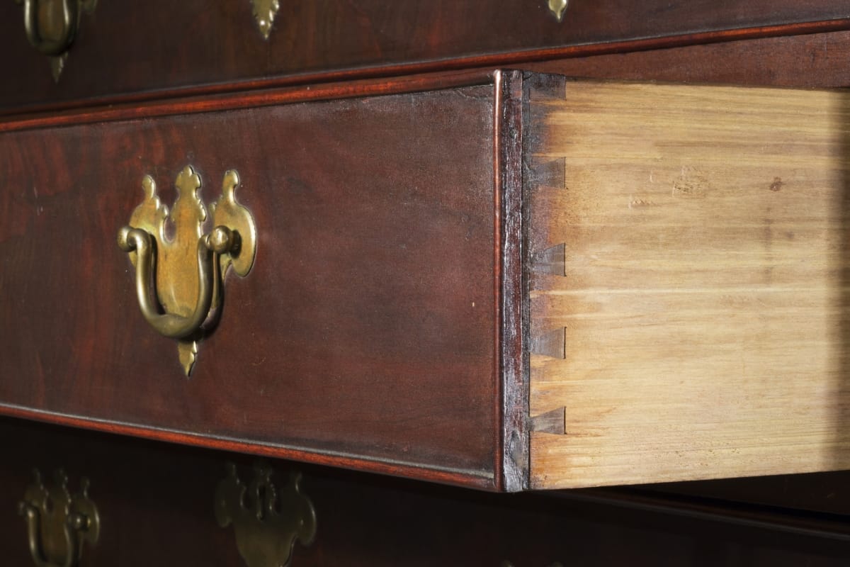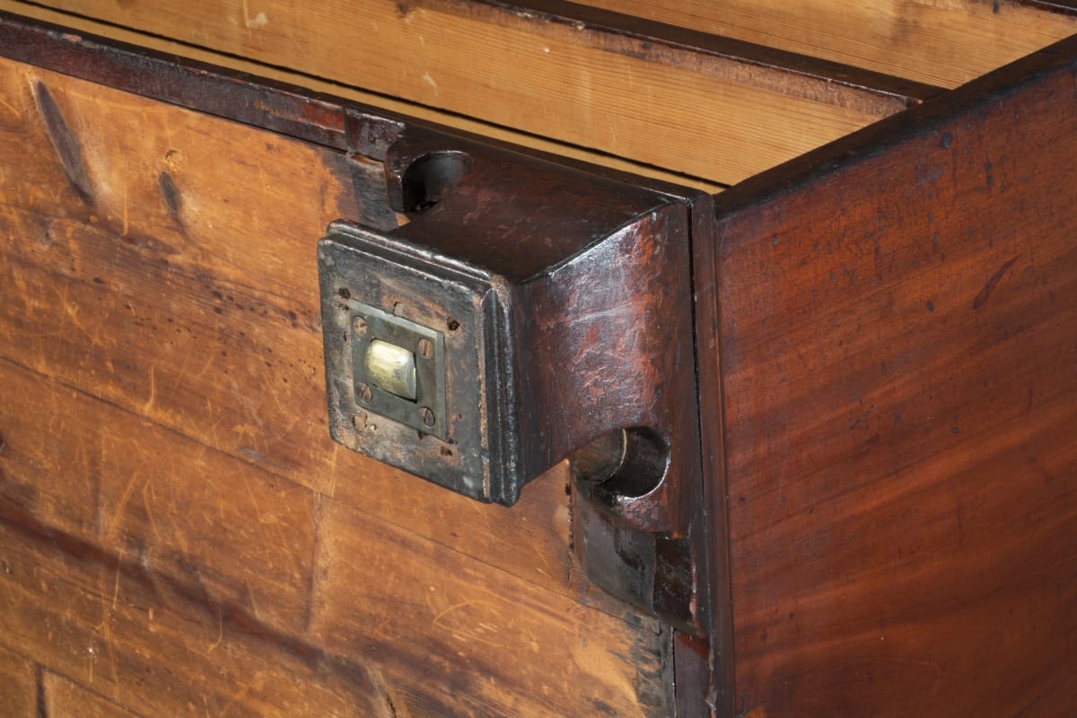 American businessmen and merchants in the mid-18th century used secretary desks as home offices. These large desks provide a writing surface, shelves for books and a storage space for papers -- perhaps even a secret drawer for important documents. Placed in a parlor or other public room, this secretary projected the owner's wealth and social status to visitors.
