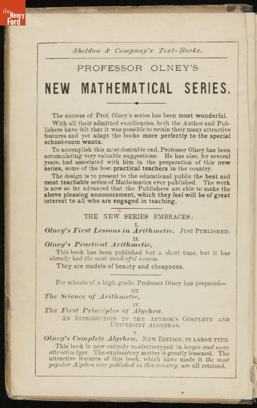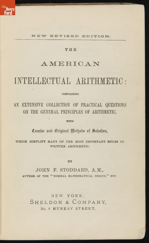 Book Used by Orville Wright, "Stoddard's American Intellectual Arithmetic," 1866
