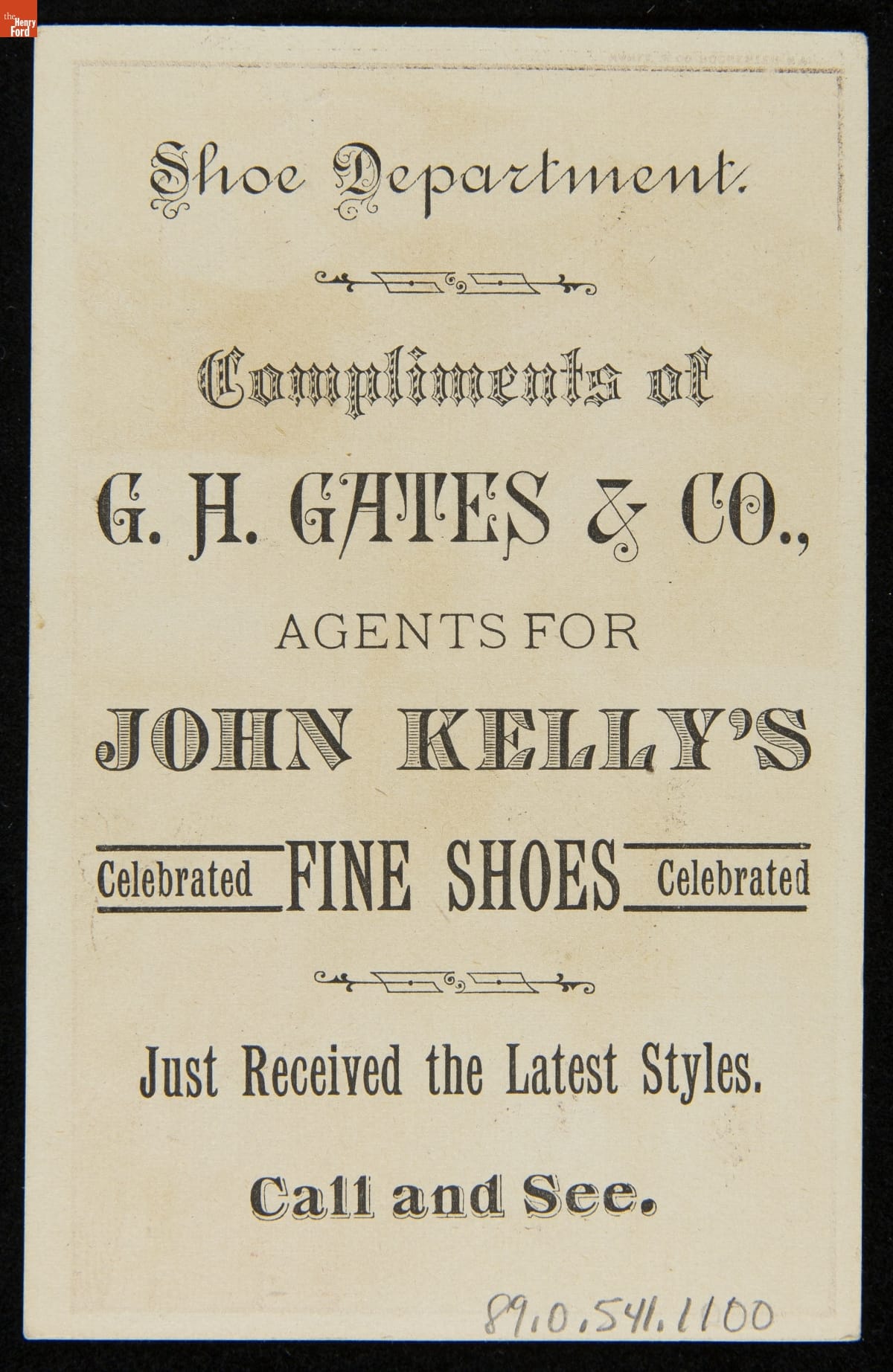 Trade Card for John Kelly's Fine Shoes, 1870-1890