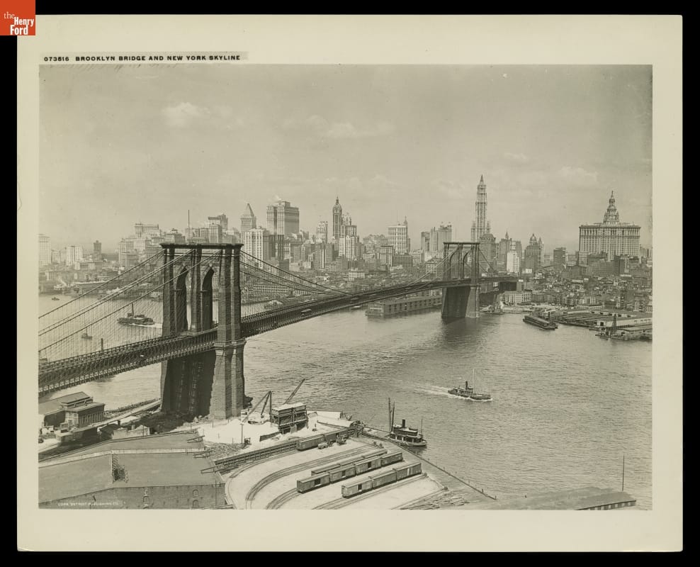 Text at top upper left of image: 073513 BROOKLYN BRIDGE AND NEW YORK SKYLINE Text in lower right corner in image: COPR. DETROIT PUBLISHING CO.