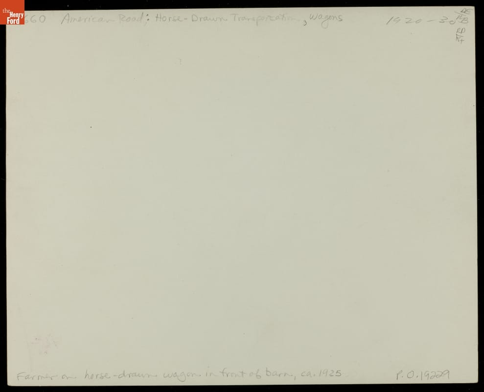 Farmer on a Loaded Wagon outside Barn, circa 1925