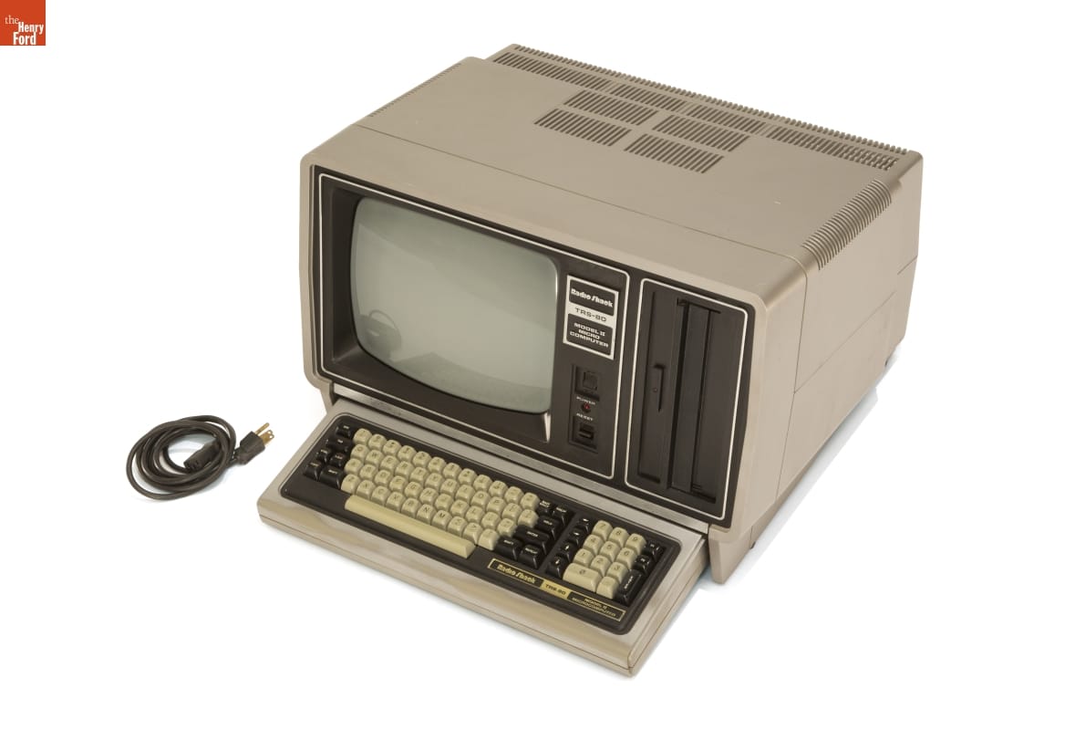 Introduced in 1979 by popular electronics company Tandy RadioShack, this microcomputer was marketed as a powerful, multitasking business machine. Big and small businesses alike established a culture of personal computers in the workplace. In opposition to previous generations who built and programmed their own machines, TRS users were discouraged by the company to tamper with its proprietary hardware and software.