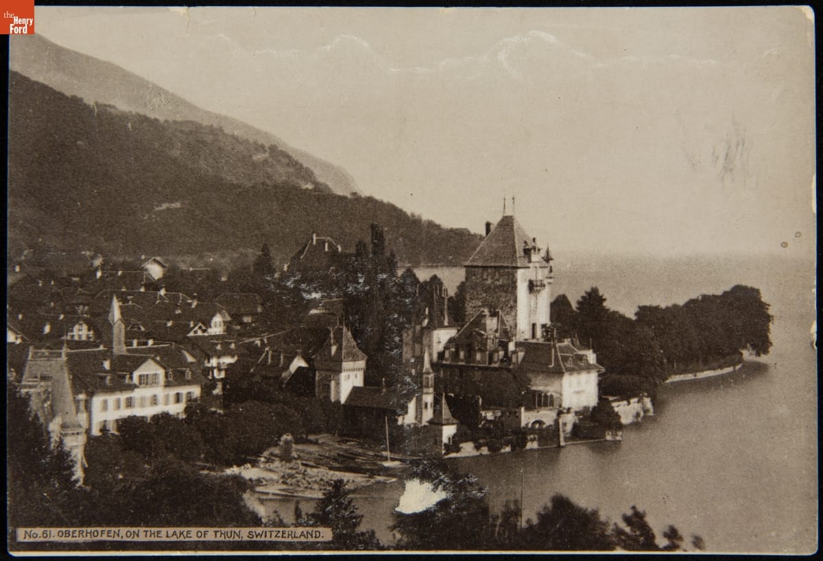 Trade Card for C.I. Hood & Co. with Hood's Photos of the World, "Oberhofen, On the Lake of Thun, Switzerland," 1890-1910