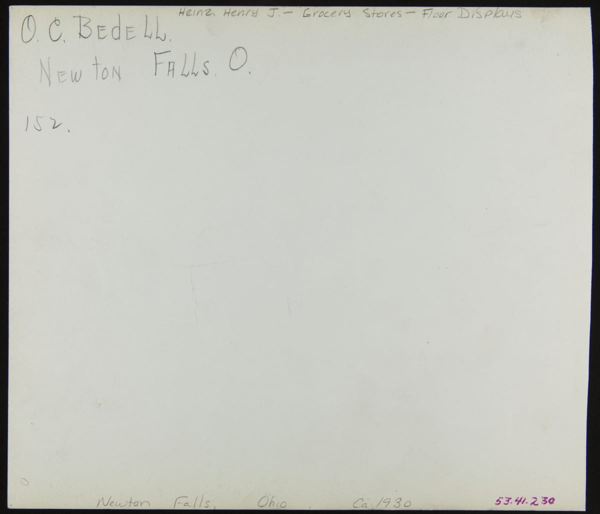 written on back: O. C. Bedell. / Newton Falls O. / 152.